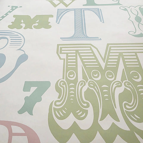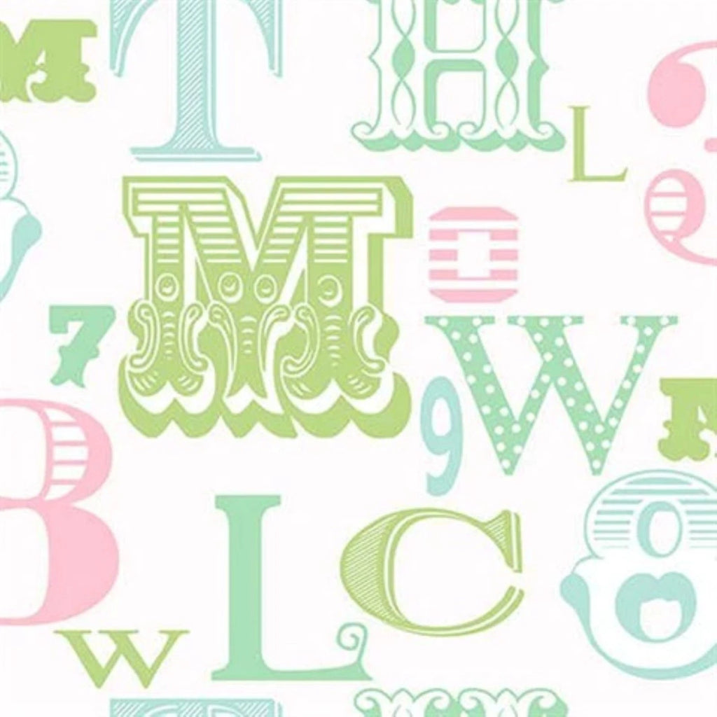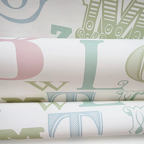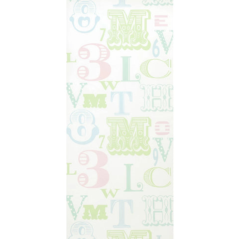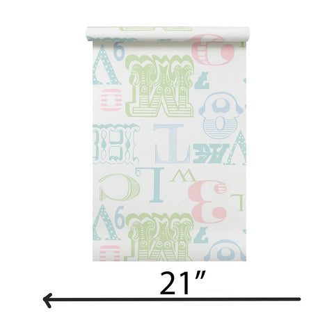 KJ51504 Pastel blue green pink off white letter numbers kids play nursery room Wallpaper