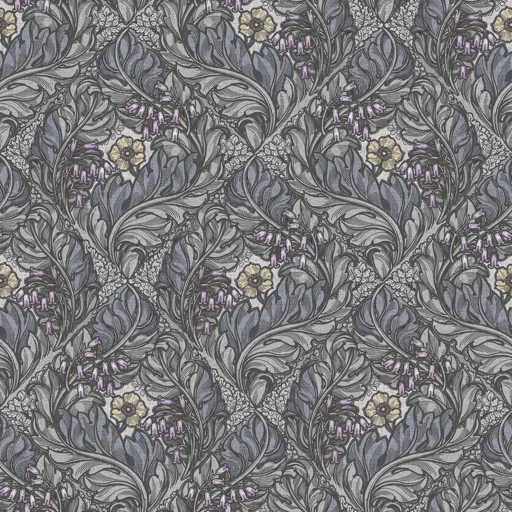 Lb25100 Floral Victorian Pattern with Stylized Leaves and Bellflowers Wallpaper