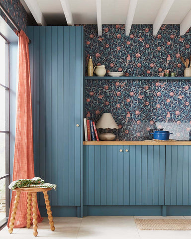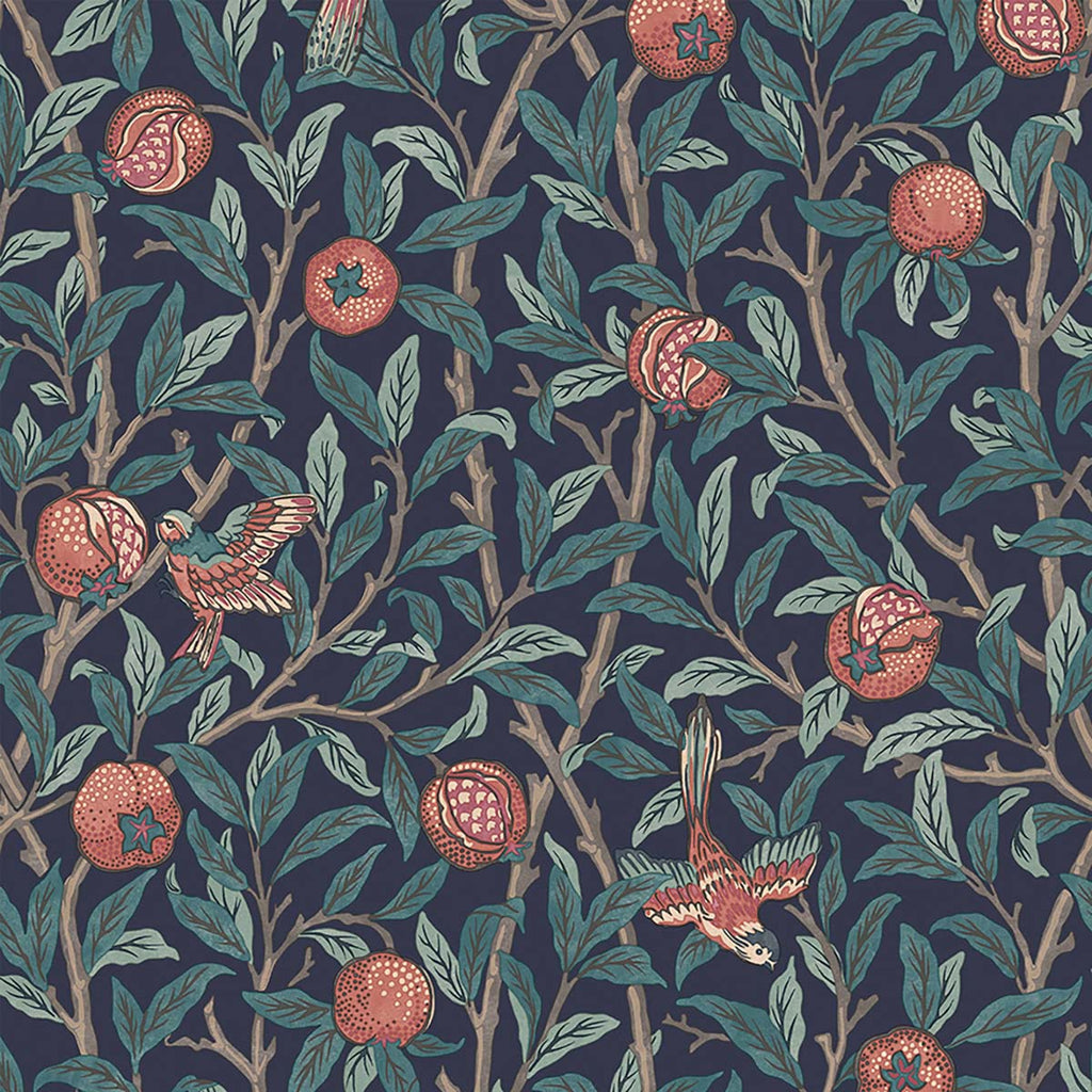 124259 William Morris Bird Pomegranate Navy Wallpaper