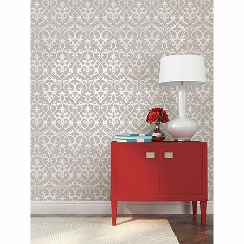 DESCRIPTION: The wallpaper type you are looking at is called "Hot Stamped". It is not fully gloss or matte. The finish is more like a pearl or satin semi-shine finish. Also, on some designs, it may have some tiny powder glitter on a print, which looks very rich and gorgeous. You can learn more about this type of wallpaper HERE