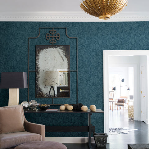 2970-87356 Selwyn Flock Dark Blue Floral Wallpaper