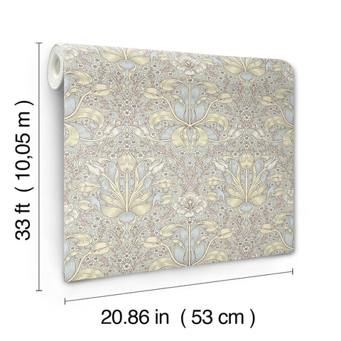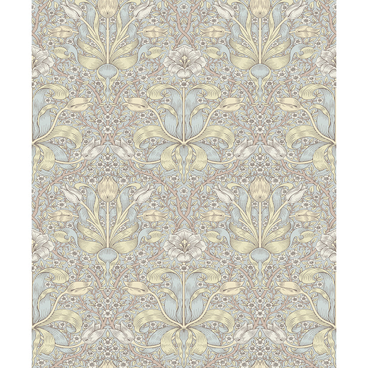 4171-82066 Spring Thicket Light Blue Tulip Damask Wallpaper