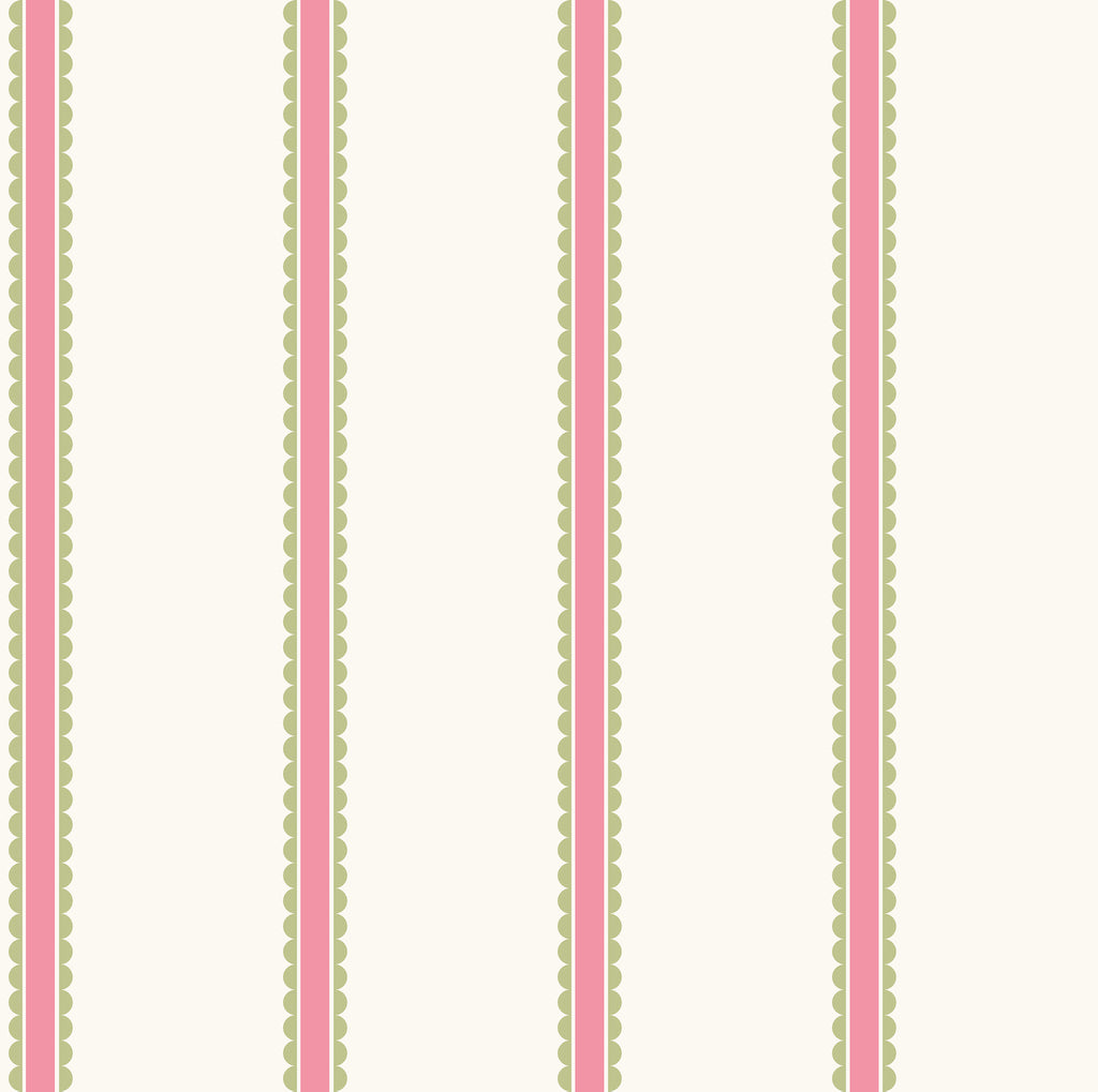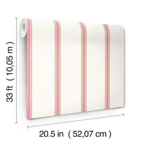4203-27574 Bobbin Stripe Fuchsia Scalloped Wallpaper