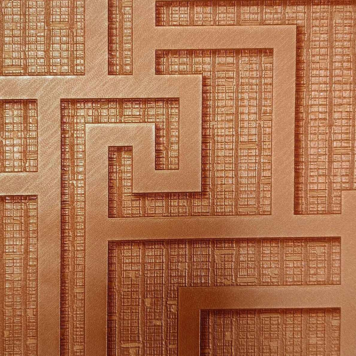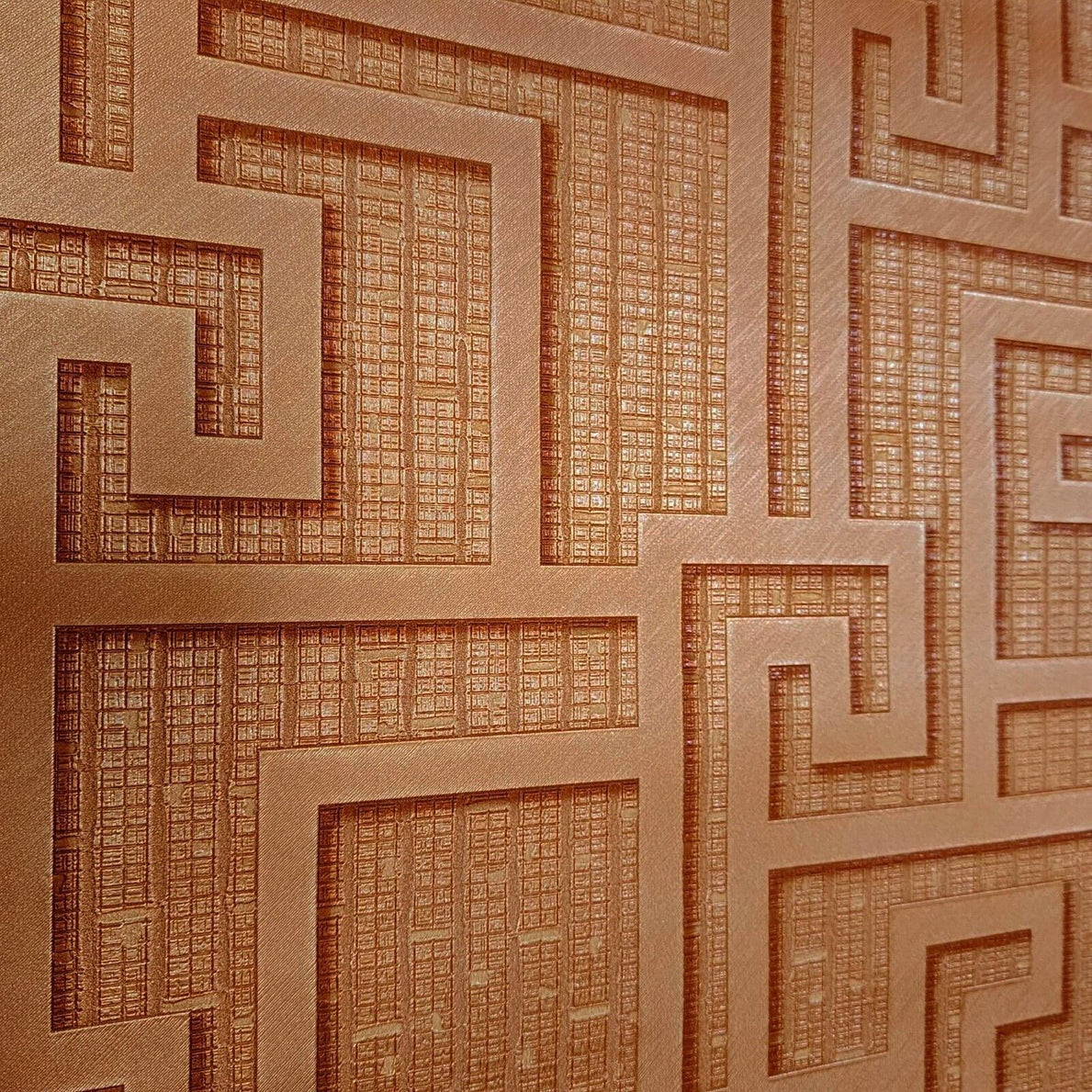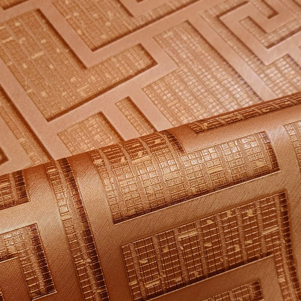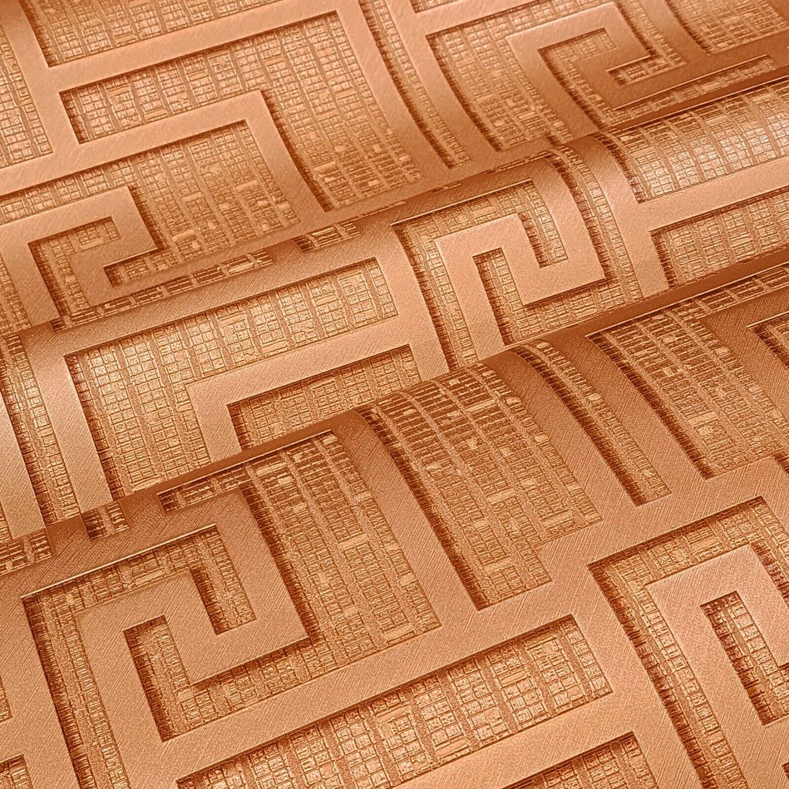 96236-2 Versace Orange Red Copper Metallic Greek Key lines textured Wallpaper 3D