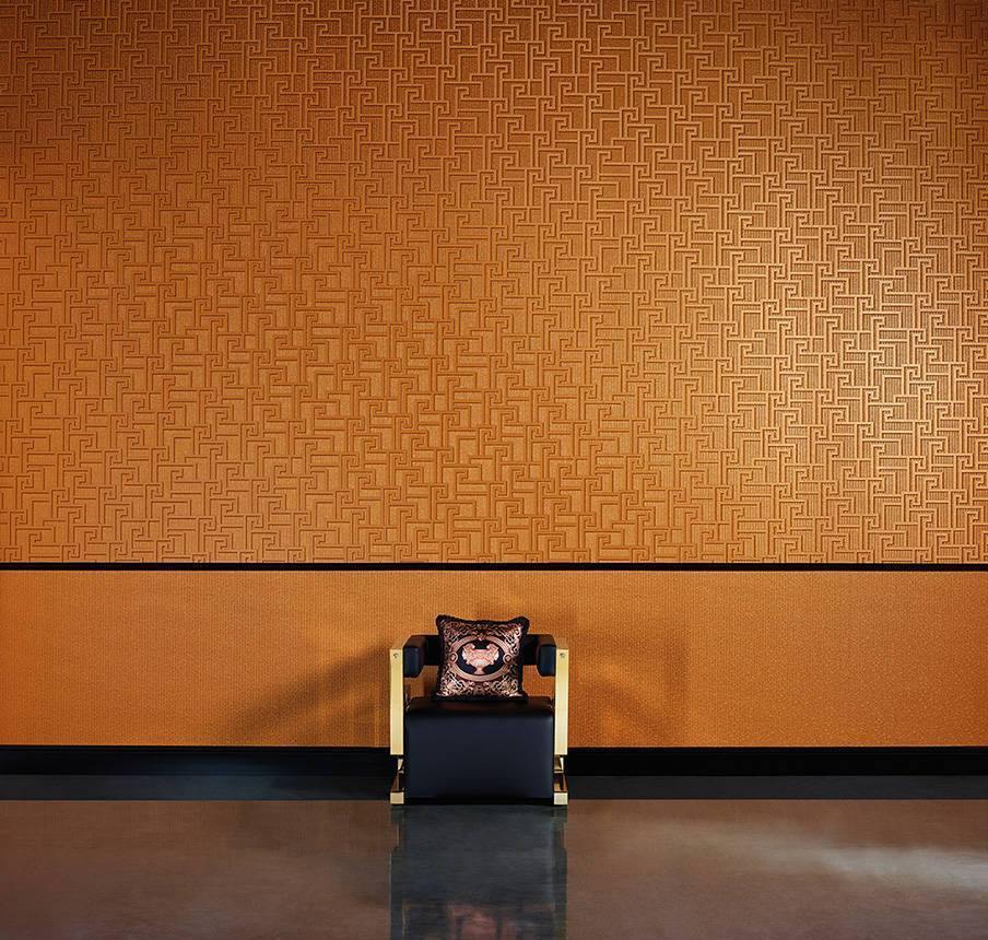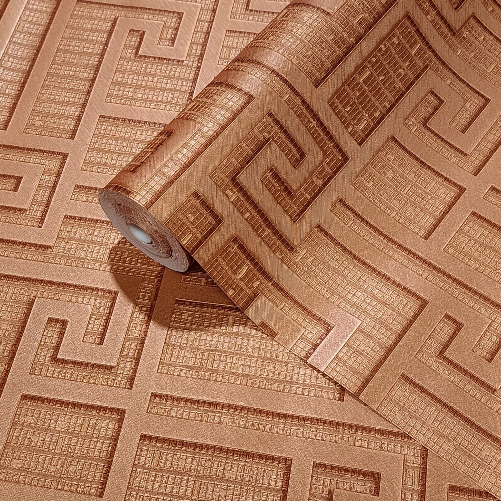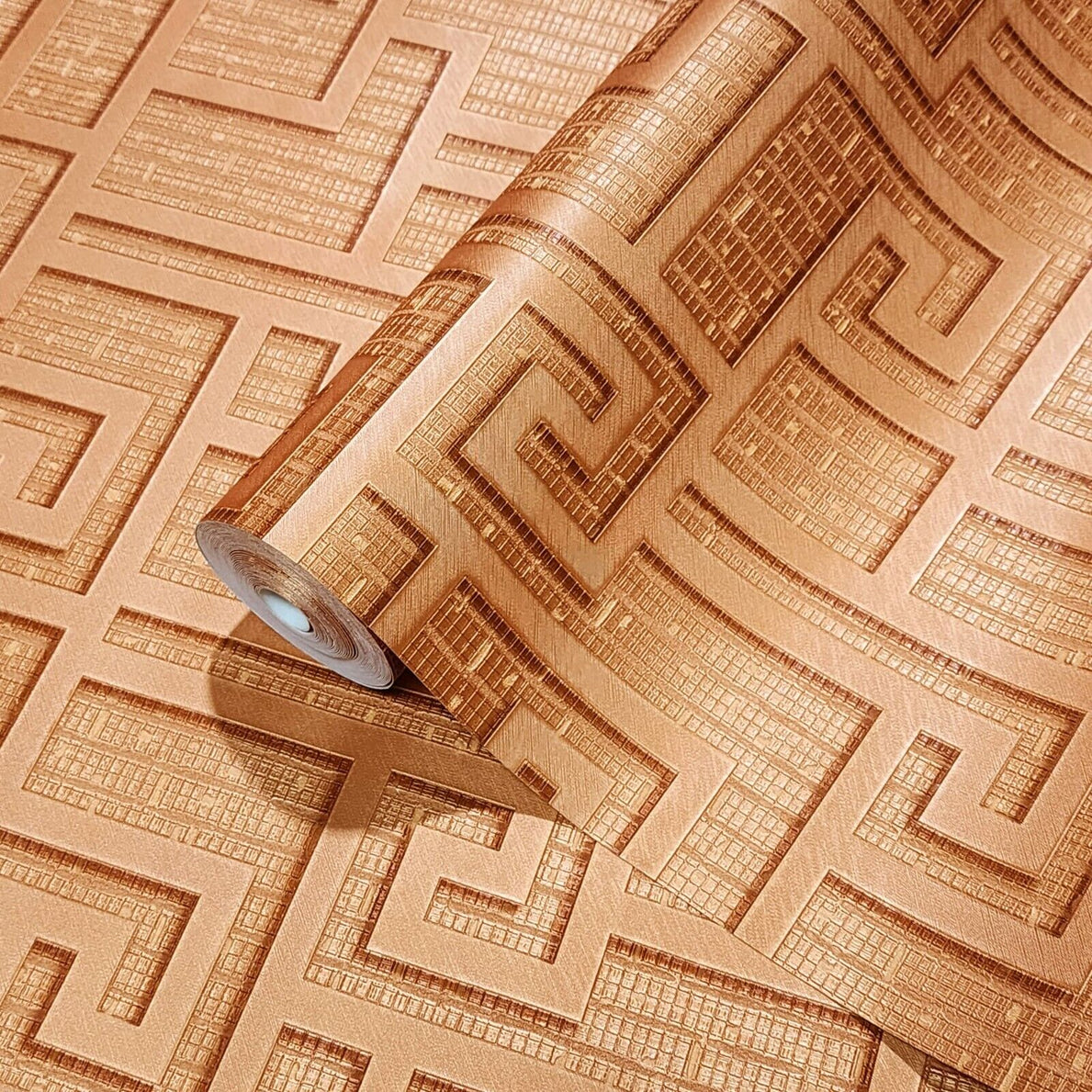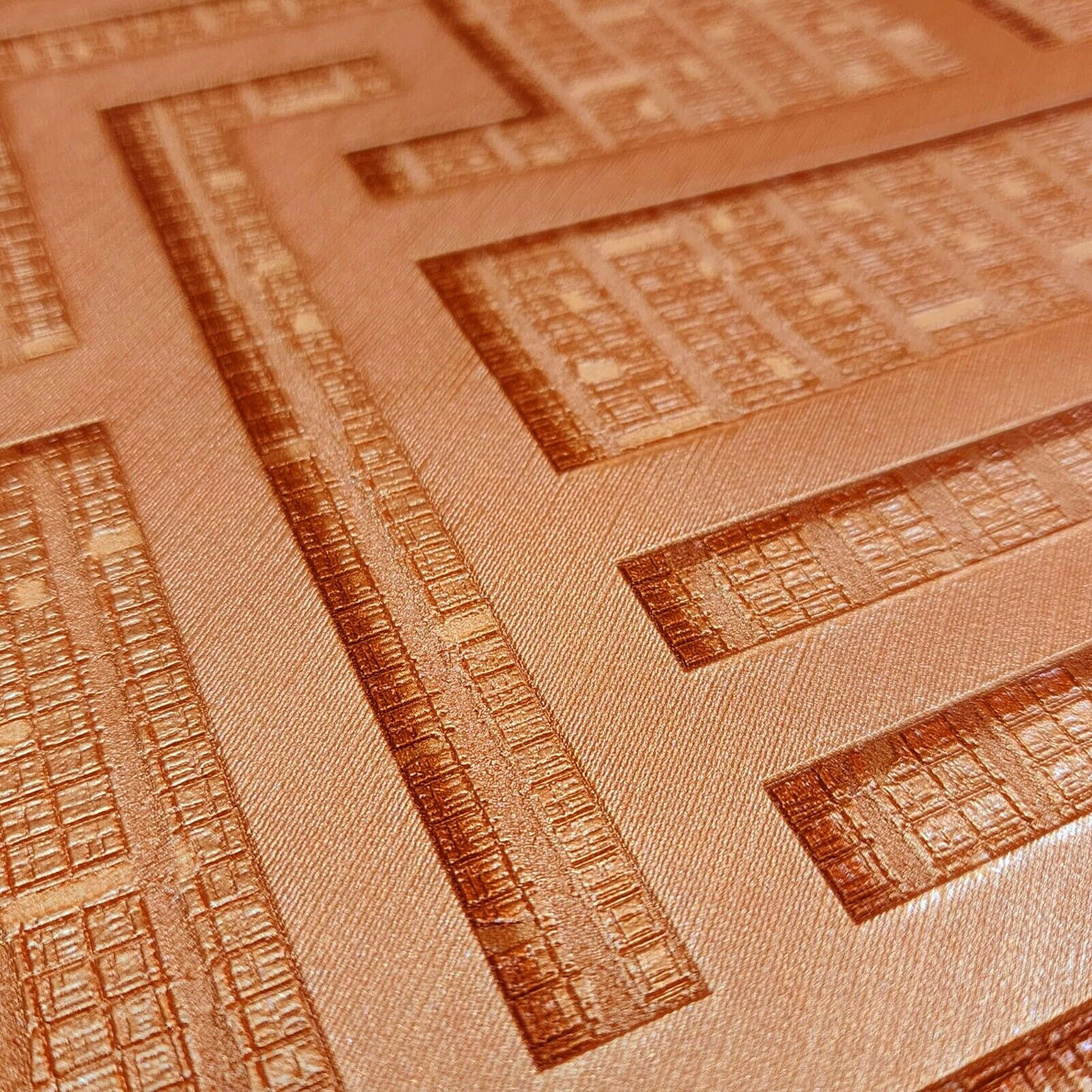 96236-2 Versace Orange Red Copper Metallic Greek Key lines textured Wallpaper 3D
