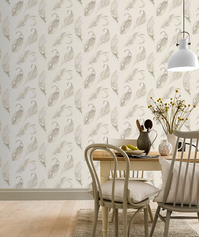 AH692601 Natsuko Metallic Feathers Wallpaper