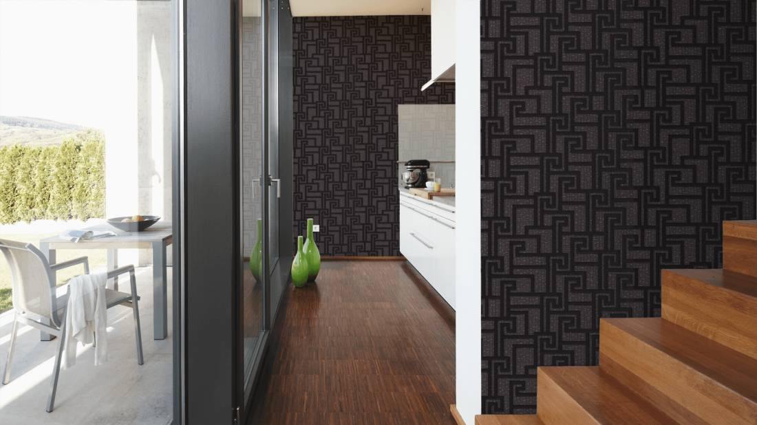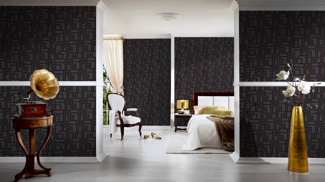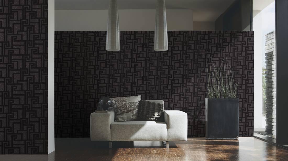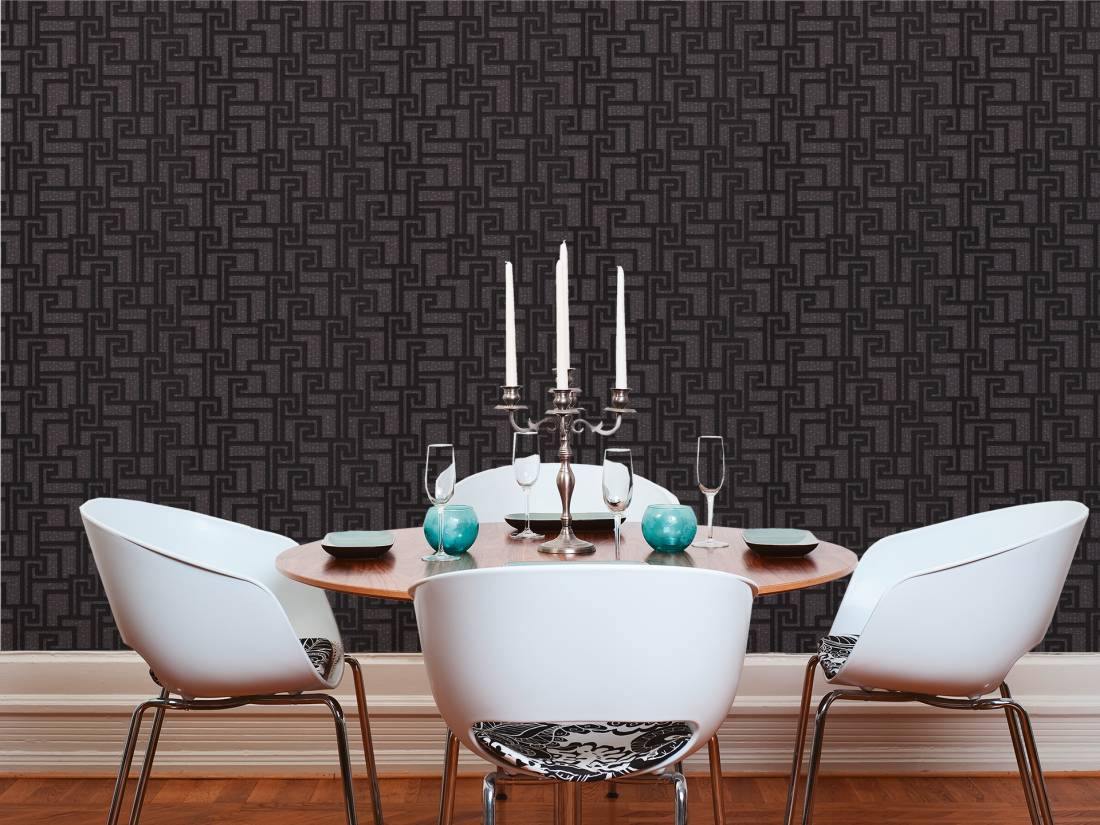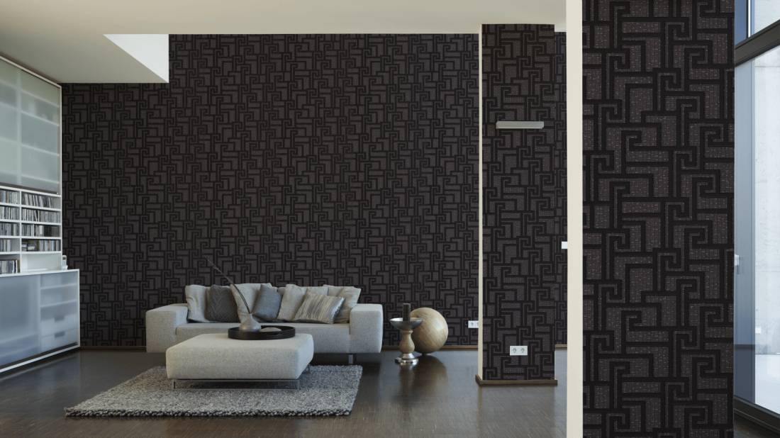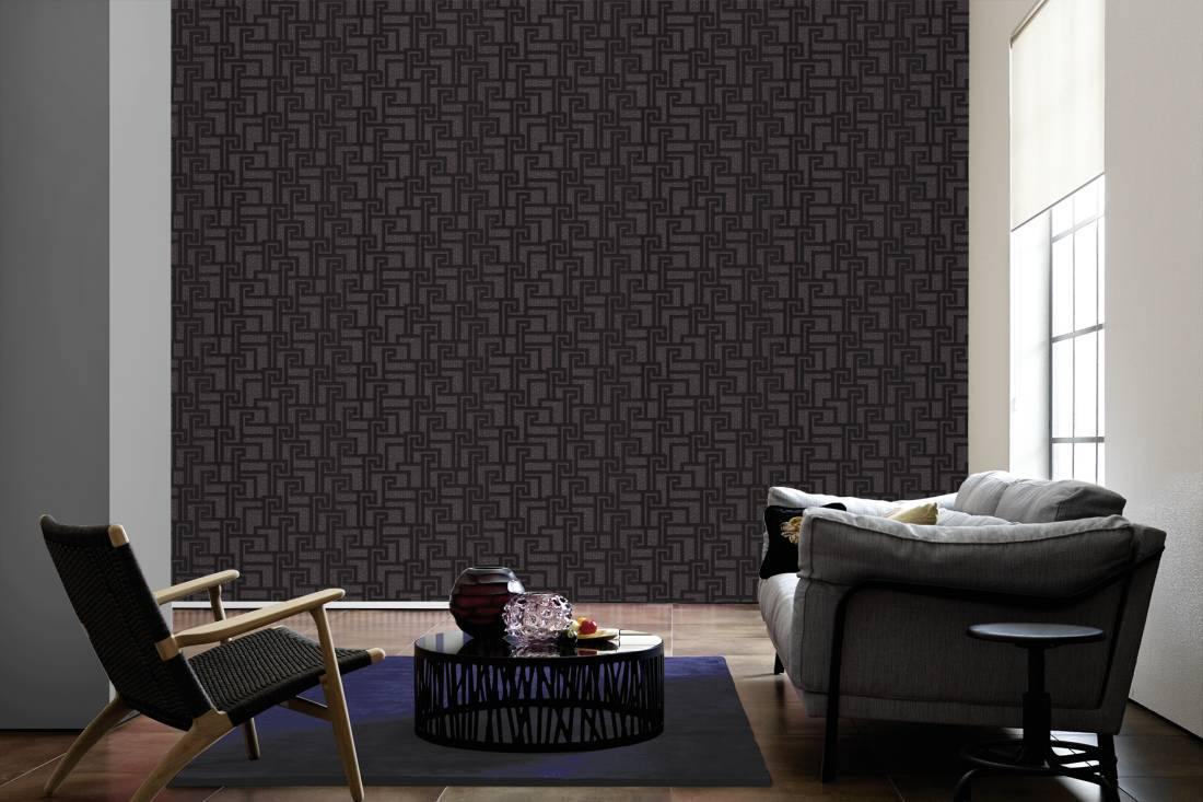 96236-3 Gray Charcoal Black Greek Key Versace Wallpaper
