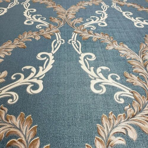 M5644 Murella blue beige taupe bronze gold Textured Damask faux fabric 3D Wallpaper
