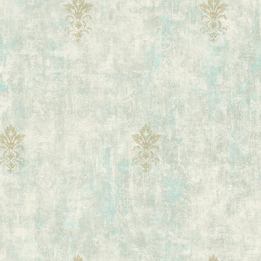 MV81004 Vintage Fleur de Lis Metallic Gold Sea Green Wallpaper