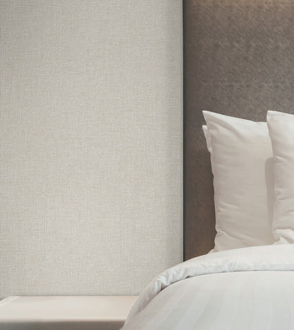 UW1124N Heathered Linen Beige Faux Fabric Wallpaper