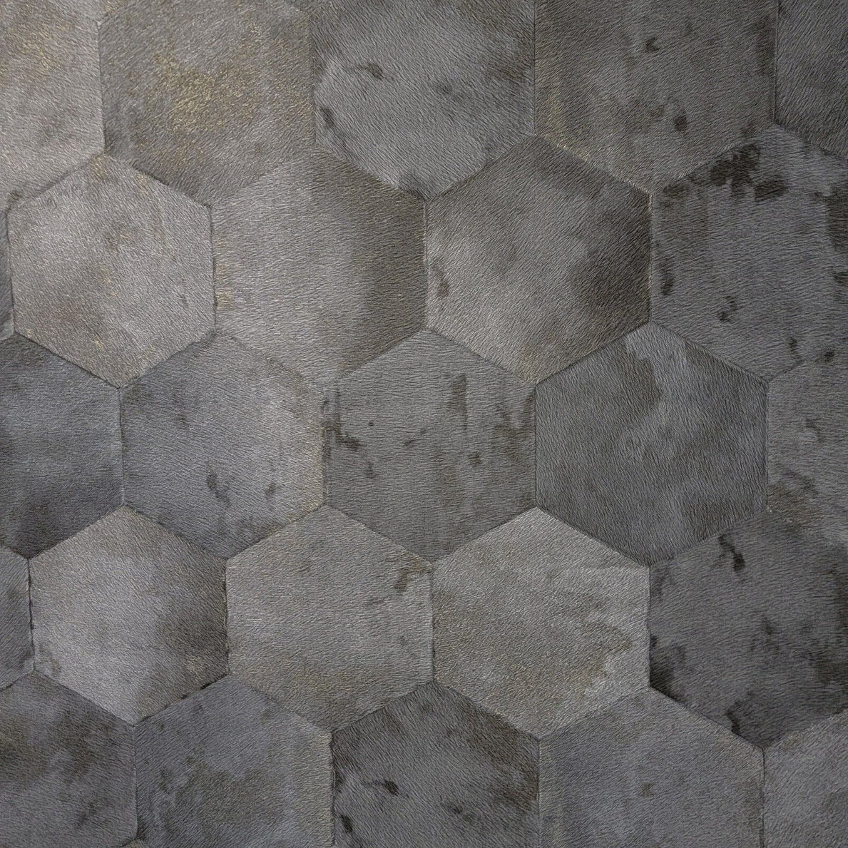 Z80004 Philipp Plein Geometric Hexagon gray gold metallic wallpaper faux cow hide skin textured rolls