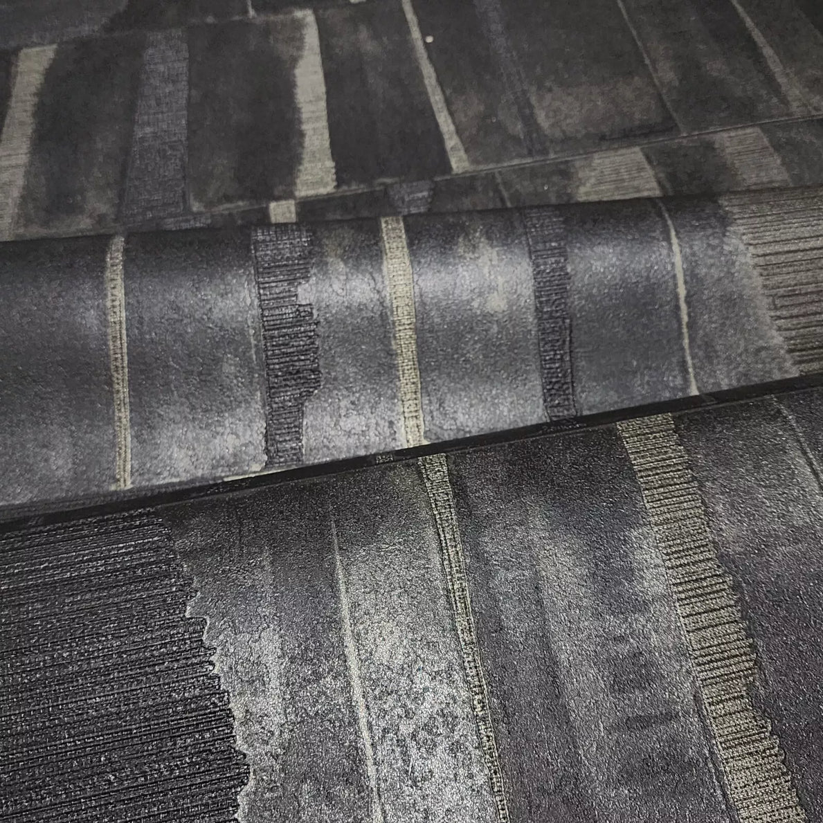 Z12812 Faux patchwork plaster textured Dark gray black bronze metallic modern Wallpaper