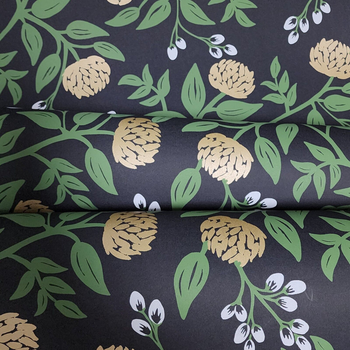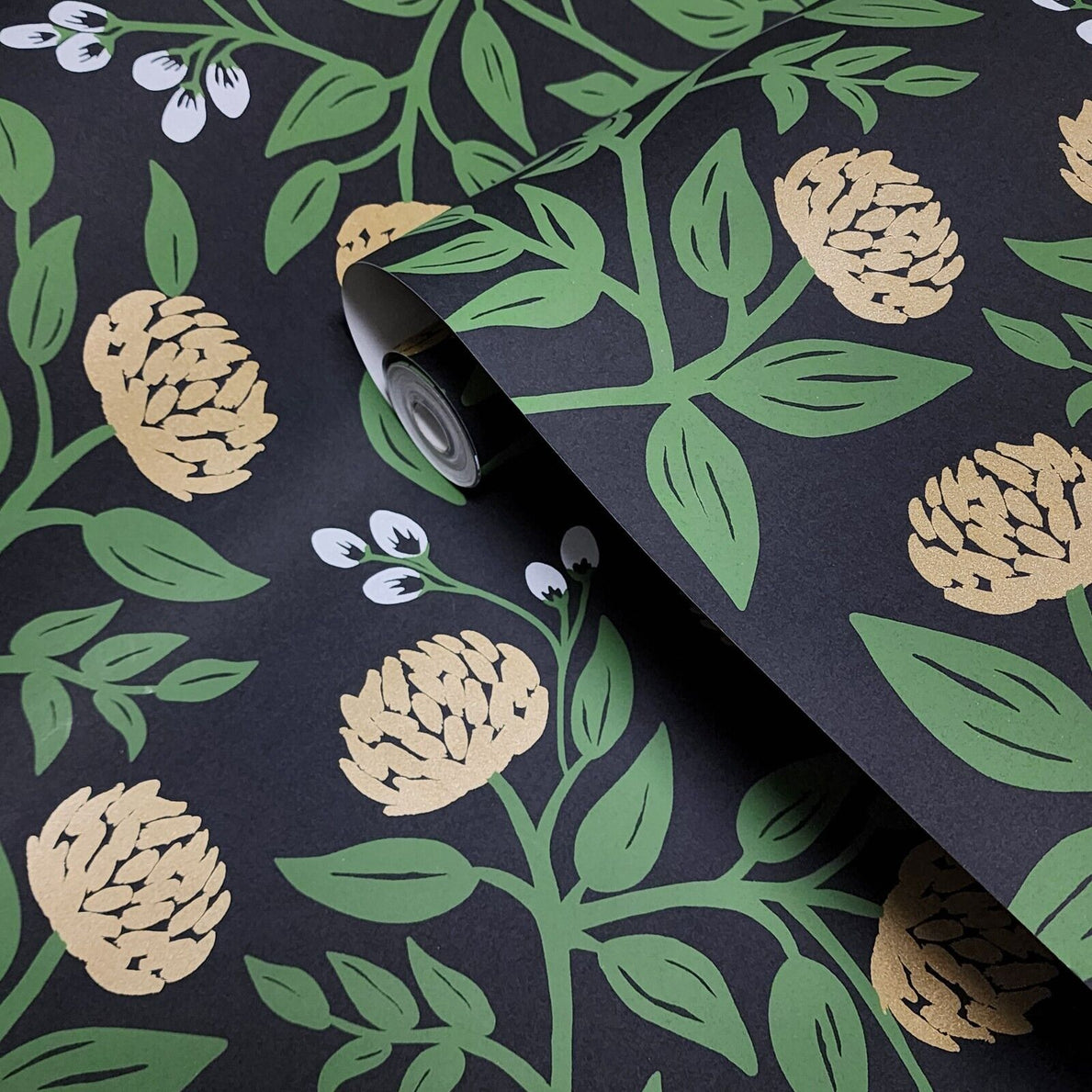 RI5151 Black green gold metallic floral peonies rifle design flowers wallpaper