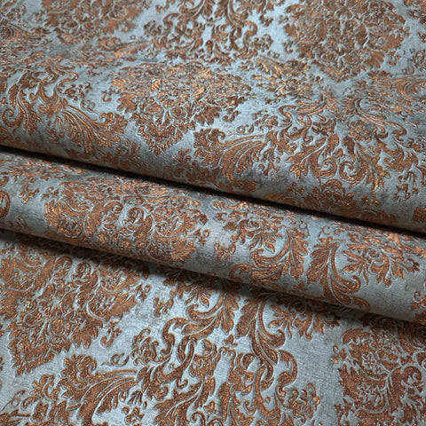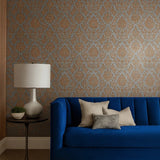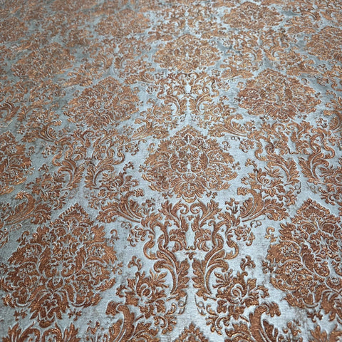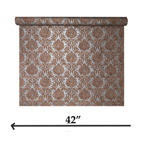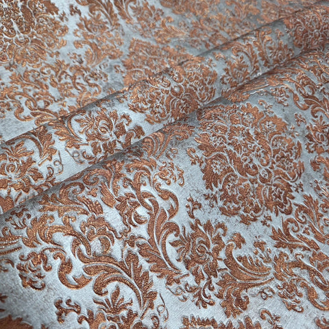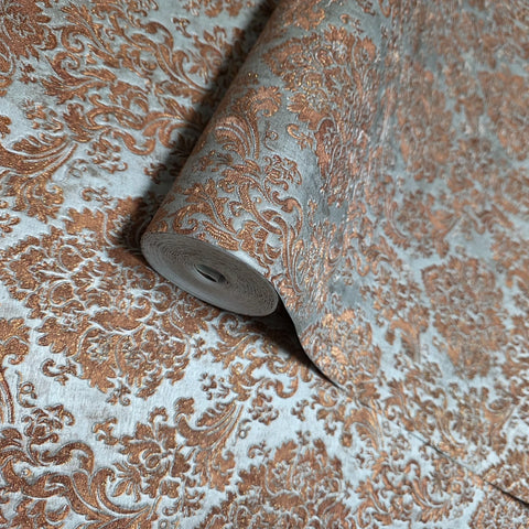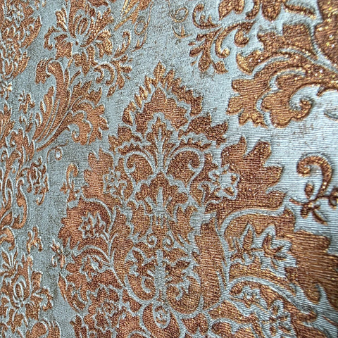 Z10943 Steel gray bronze copper metallic Victorian damask faux fabric texture Wallpaper