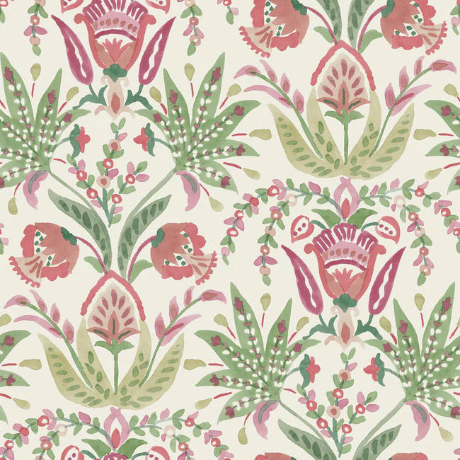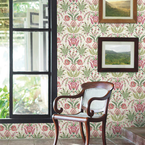 MN1914 Seaside Jacobean Beige Green Red Wallpaper