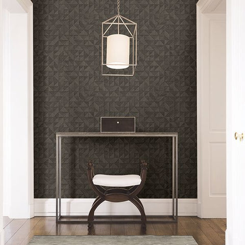 2908-25326 Gallerie Dark Brown Geometric Wood Wallpaper
