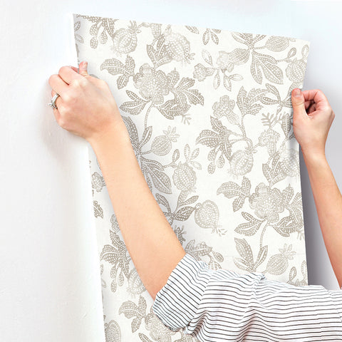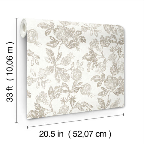 4172-27493 Beach Rose Neutral Floral Fruits Wallpaper