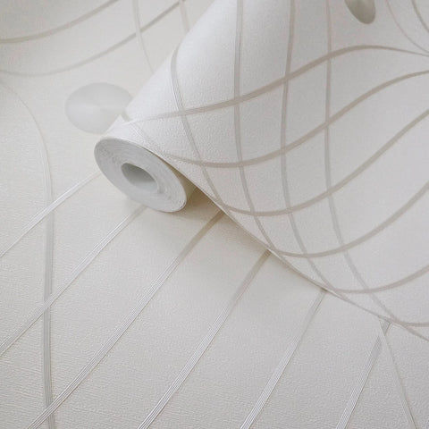 56335 Ogee Curved Wave curves lines ivory off white cream textured modern wallpaper 3D