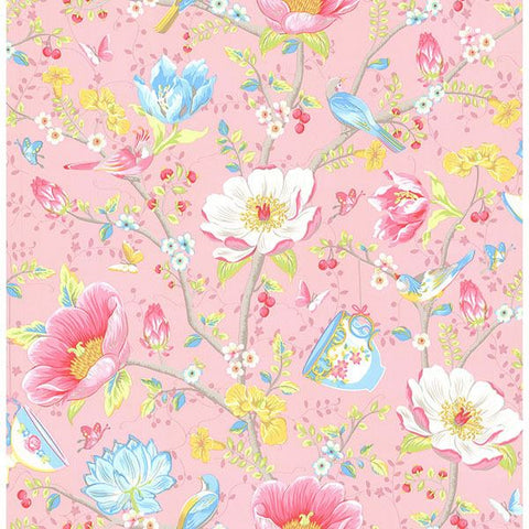 300160 Yuma Light Pink Birds in Paradise Wallpaper