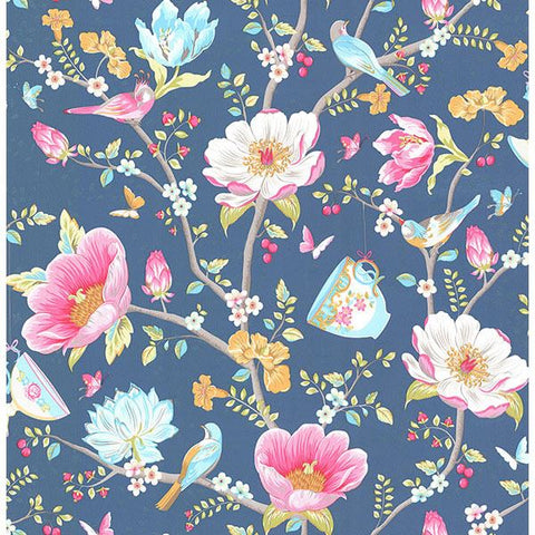300153 Garden Party Dark Blue Raindrops Wallpaper