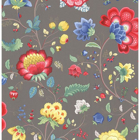 300121 La Majorelle Khaki Ornate Floral Wallpaper