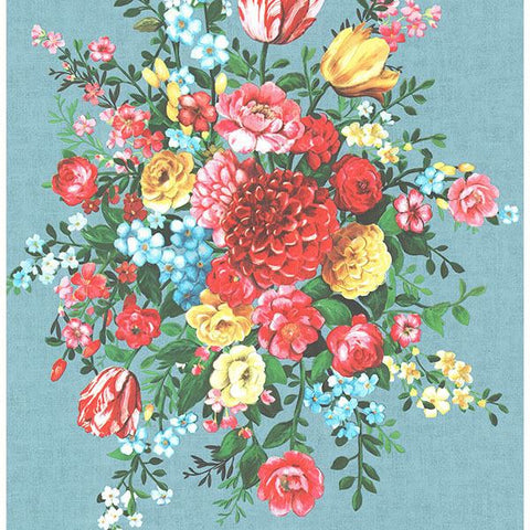 300125 La Majorelle Teal Ornate Floral Wallpaper
