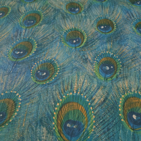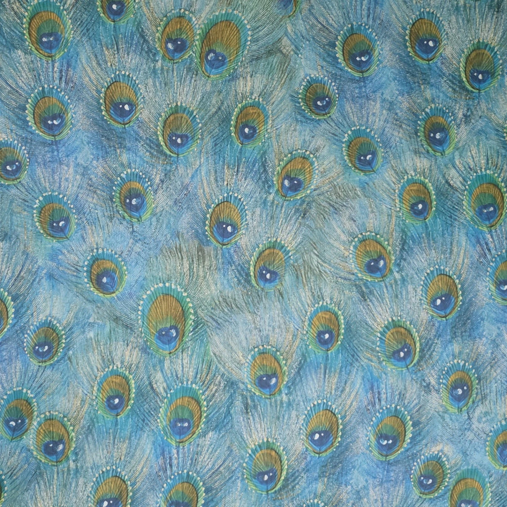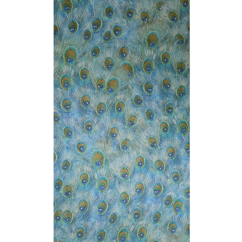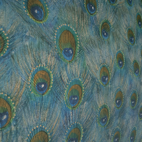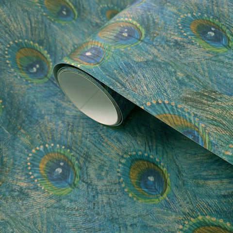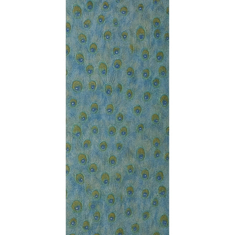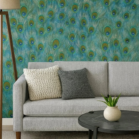 58504 Peacock feather mural blue green gold teal faux fabric textured exotic wallpaper