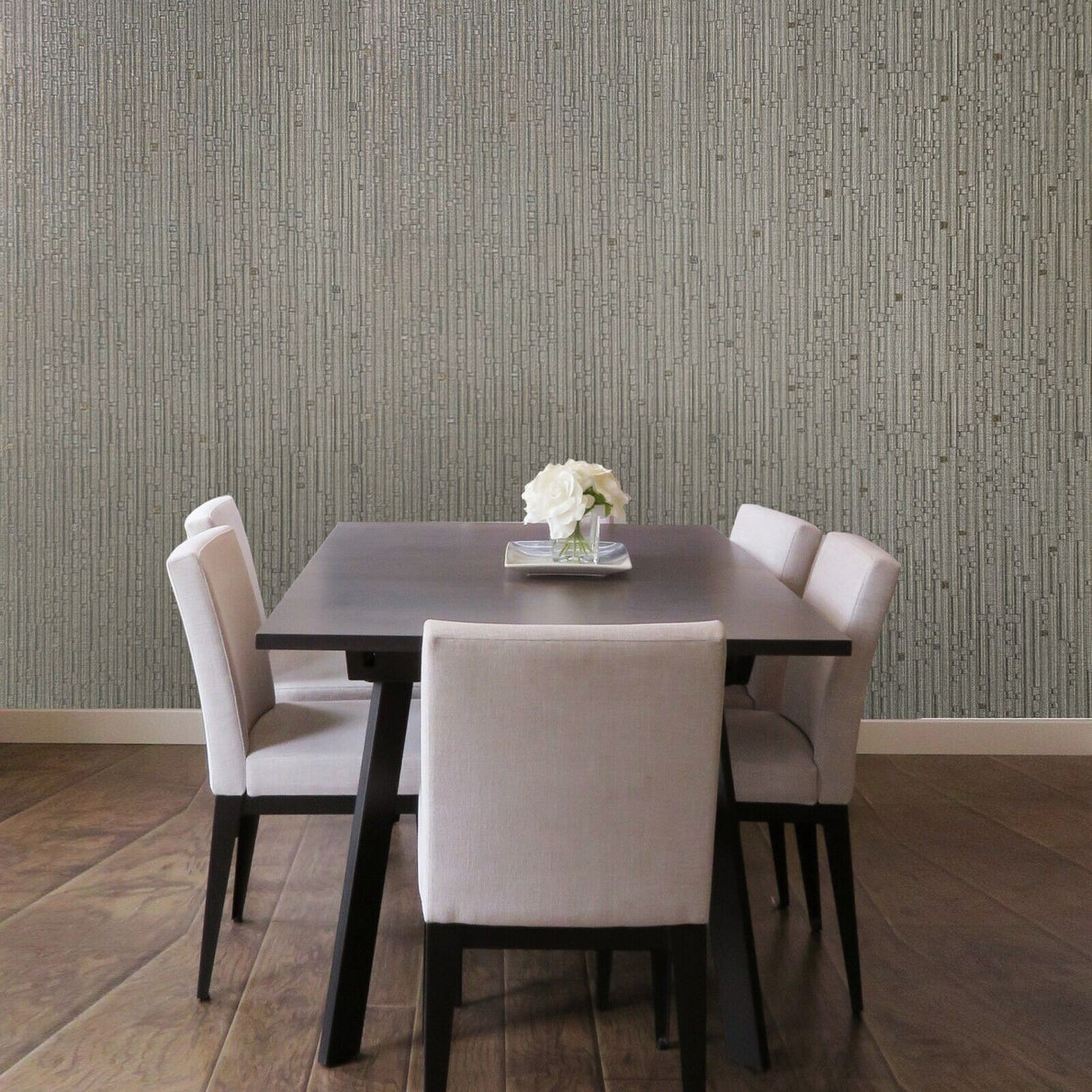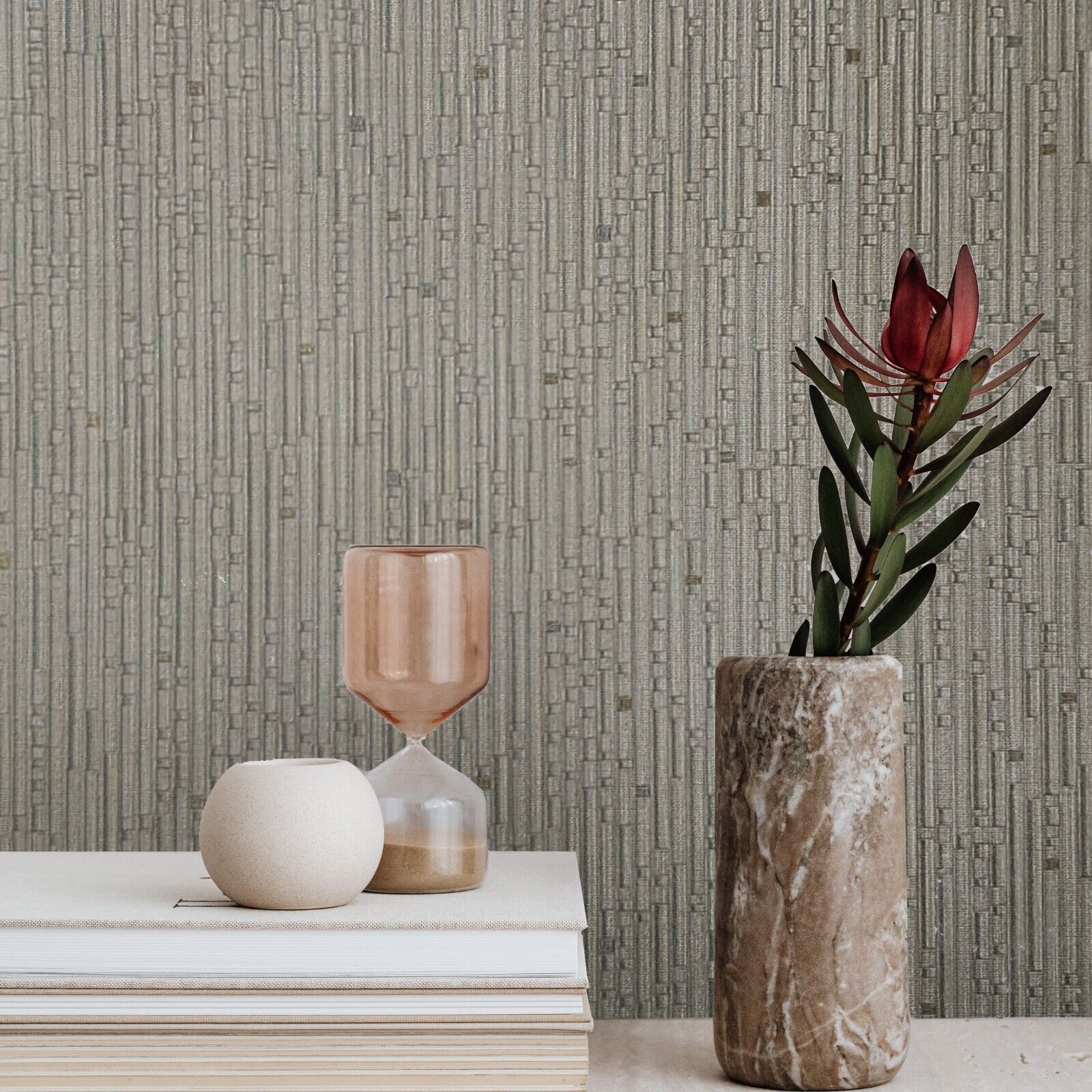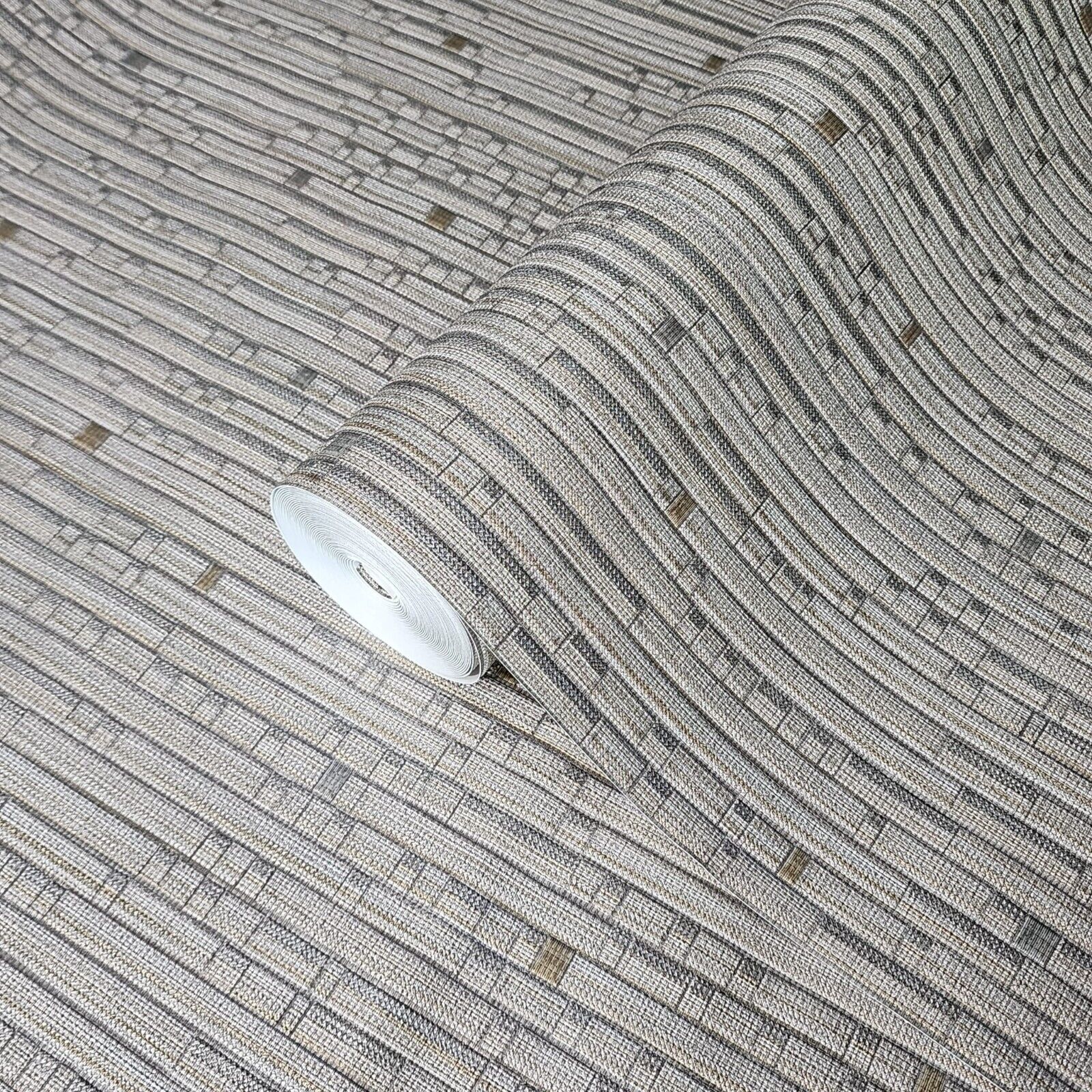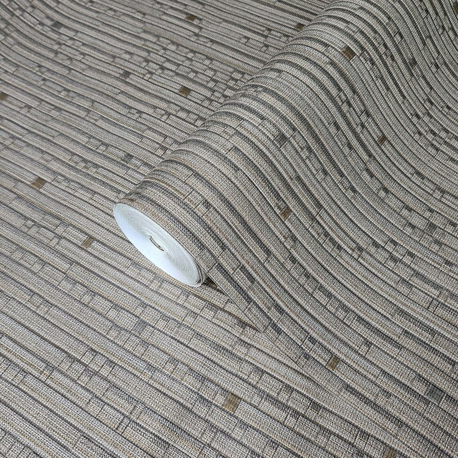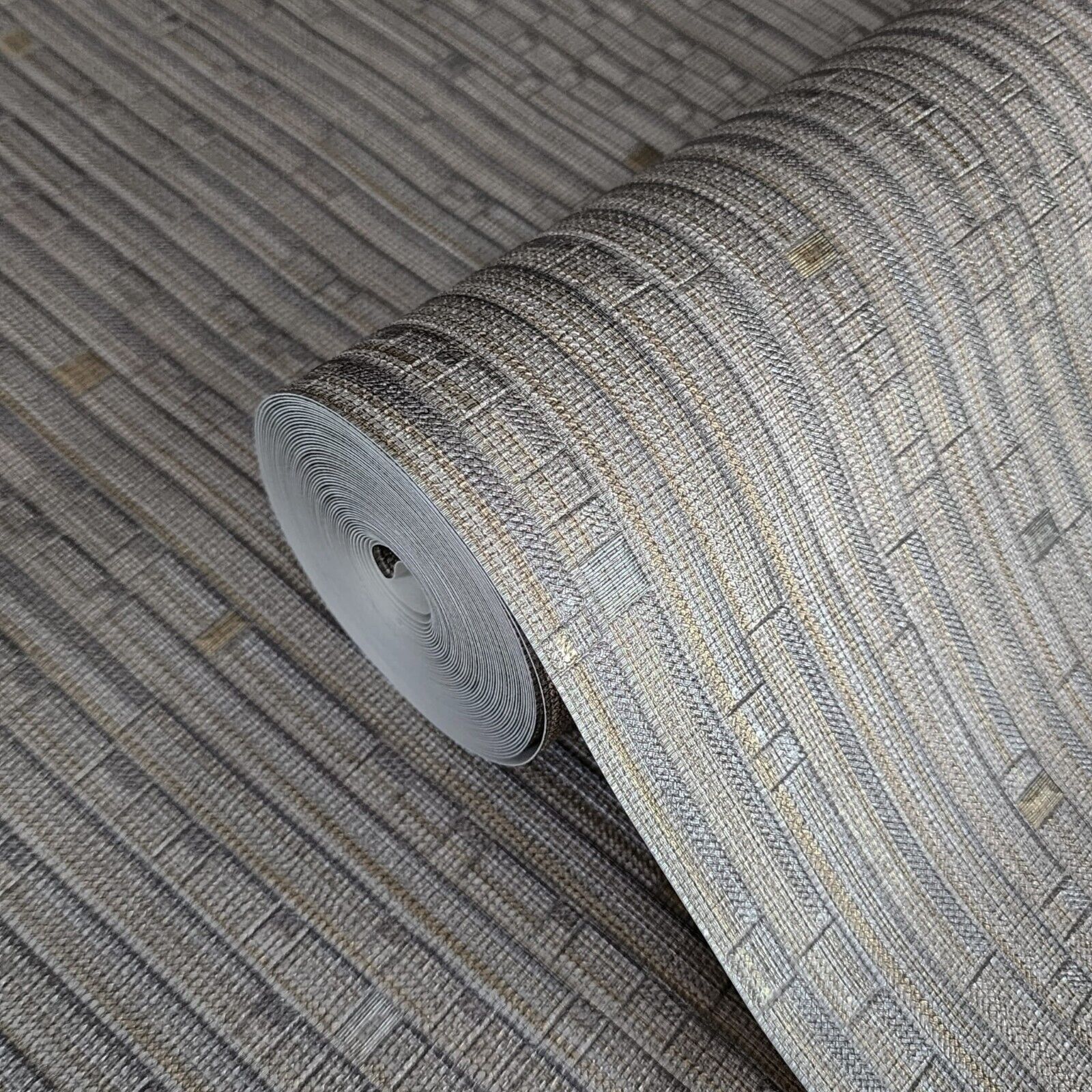 M16045 Striped Wallpaper gray gold tan textured vertical faux bamboo grasscloth lines
