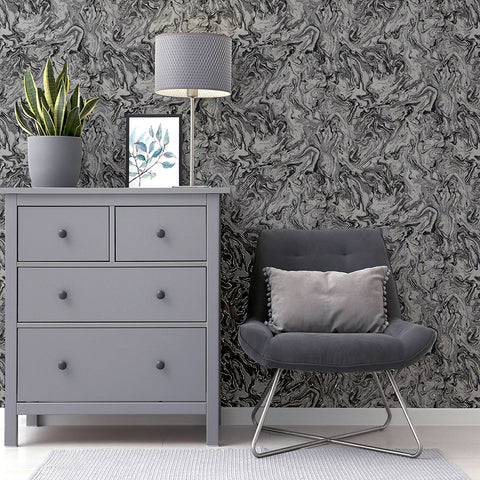 AH693903 Osgood Charcoal Marbled Wallpaper
