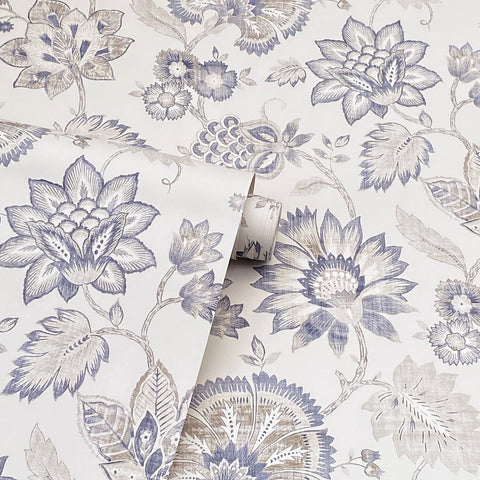 AH924707 Prudie Denim Jacobean Trail Wallpaper