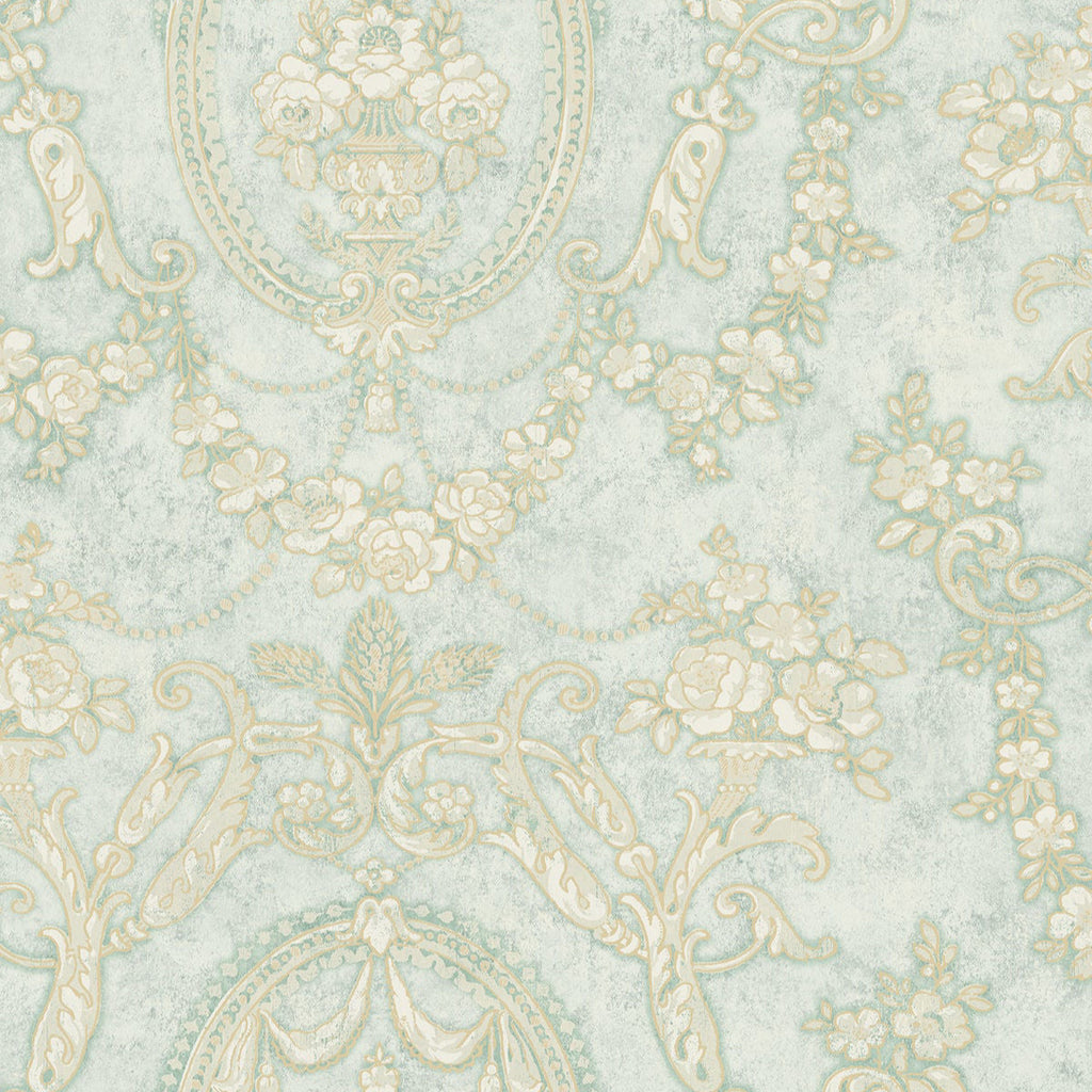 MV80602 Vintage Cameo Gold Shimmer Sky Blue Wallpaper
