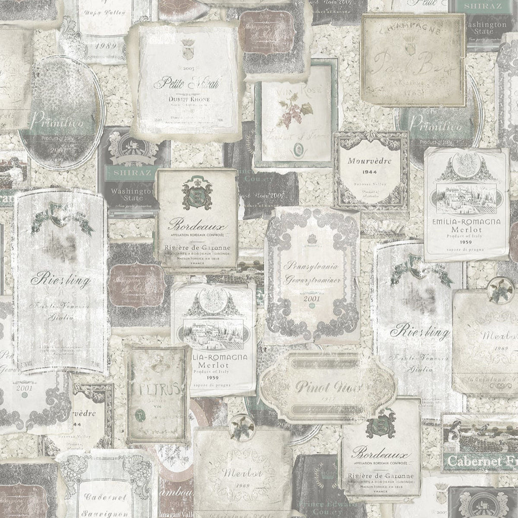 MV81208 Labels Matte Taupe Burgundy Wallpaper
