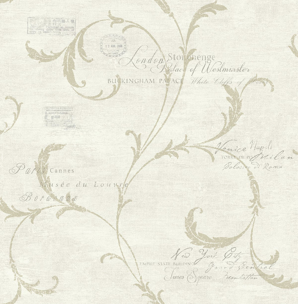MV82107 Scroll Stamps Champagne Shimmer Taupe Wallpaper