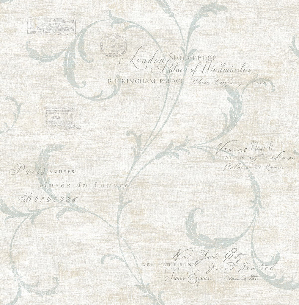 The Vintage Home II collection, the second updated edition of the previous catalog, is designed around stripes of various widths and colors, country-style flower buds, book shelves, and accompanying artwork.