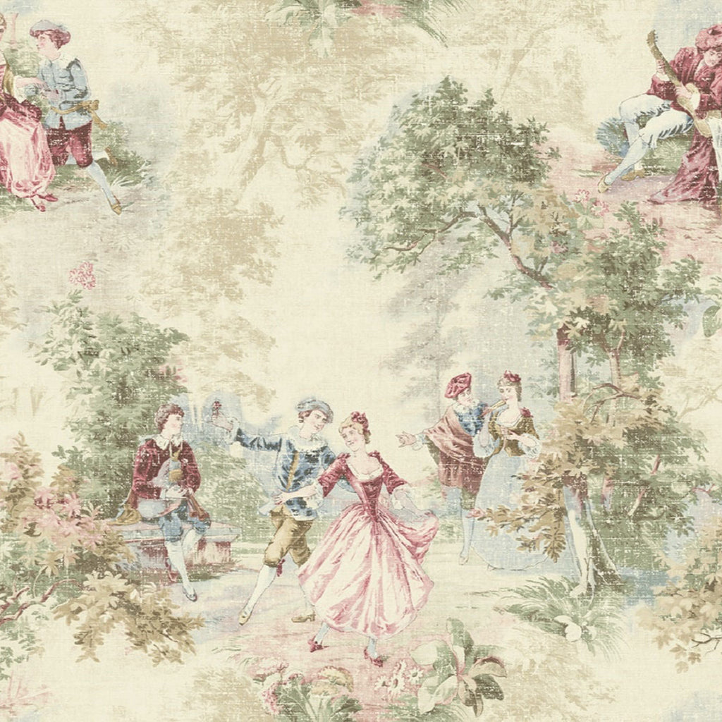 MV82301 Vintage Toile Satin Taupe Raspberry Wallpaper