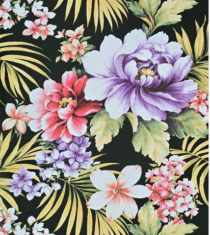 TR20500 Black red violet green tropical floral Lavender peony blossom flowers wallpaper