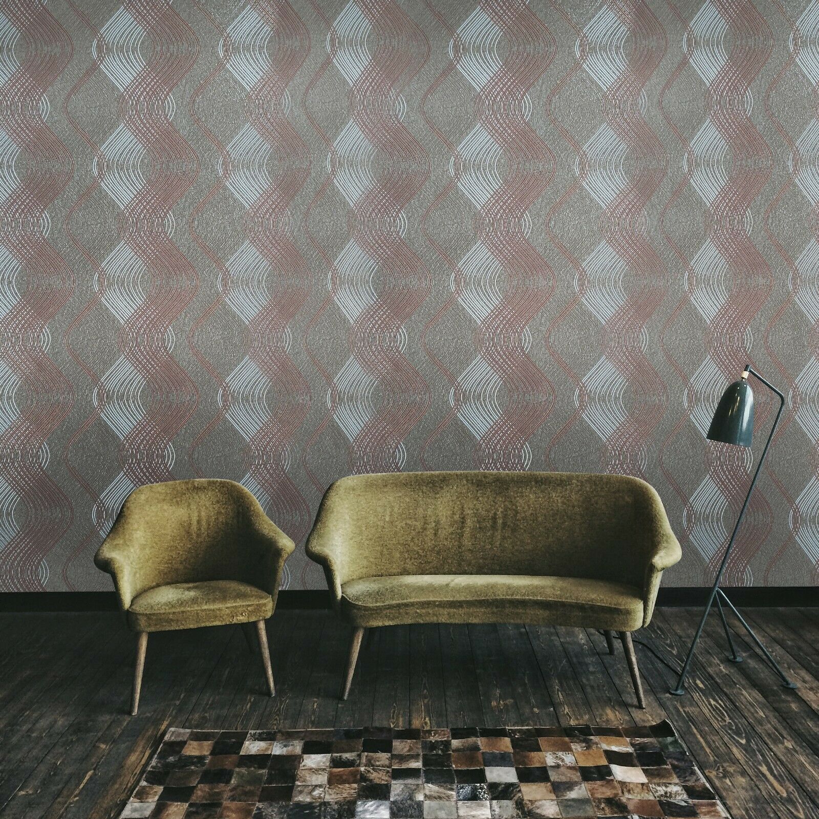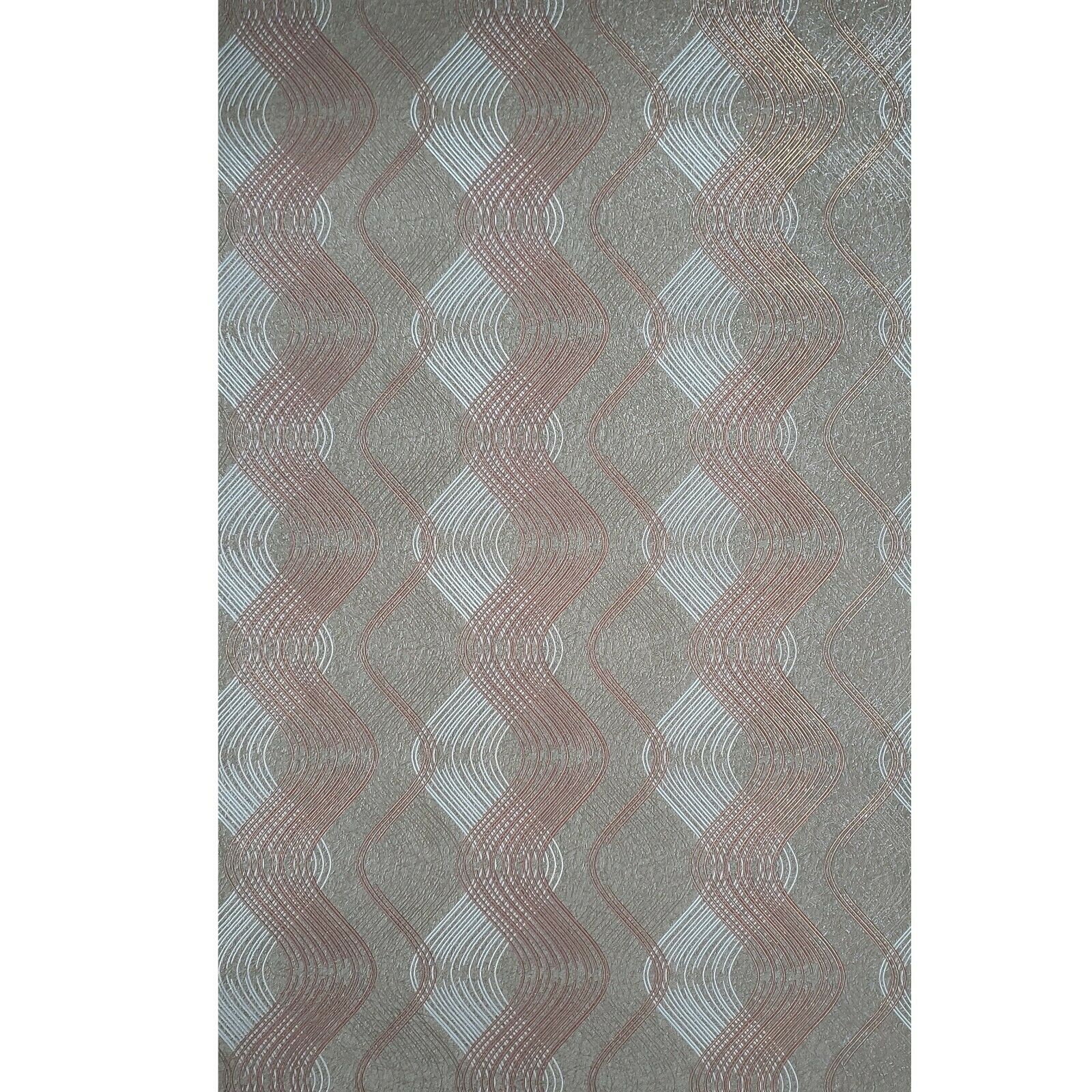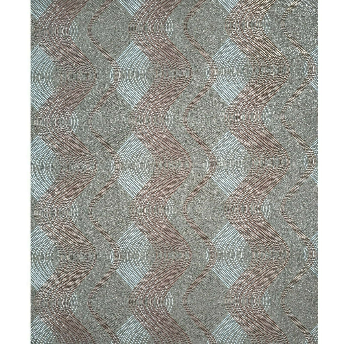 8602-13 Geometric taupe brown metallic silver trellis wave lines Wallpaper