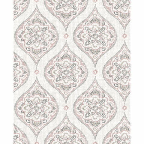 2821-25105 Lovebirds Light Pink Folk Stripe Wallpaper