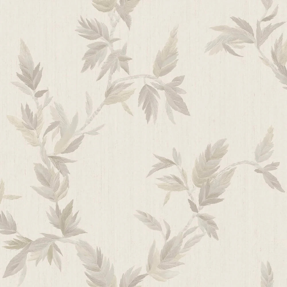 35911 Thin Leaf Beige Silver Wallpaper