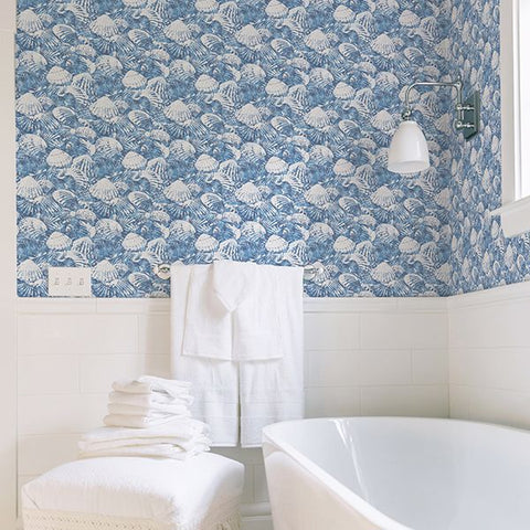 2904-25691 Surfside Blue Shells Wallpaper