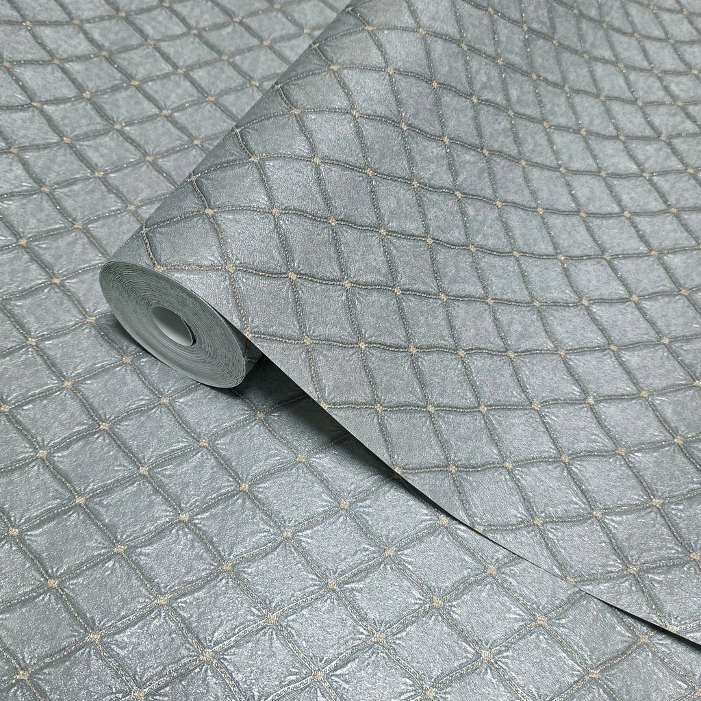 Z15534 Embossed gray silver gold metallic faux fabric textured diamonds Wallpaper rolls