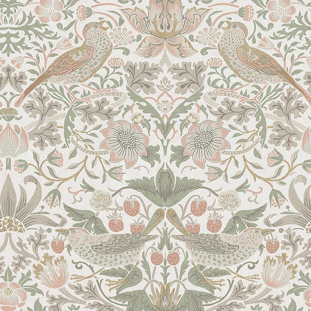 124233 William Morris Strawberry Thief Sage and Pink Wallpaper