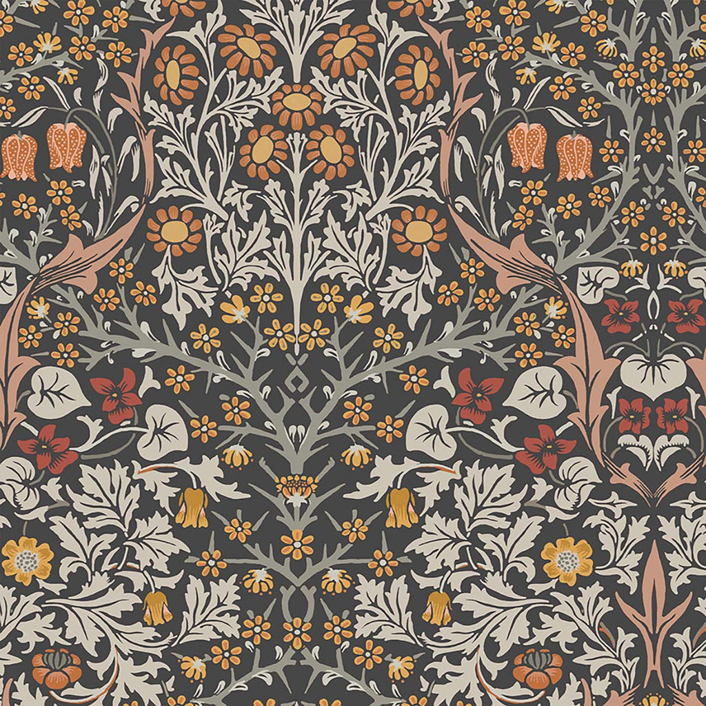 124250 William Morris Blackthorn Charcoal Burnt Orange Wallpaper