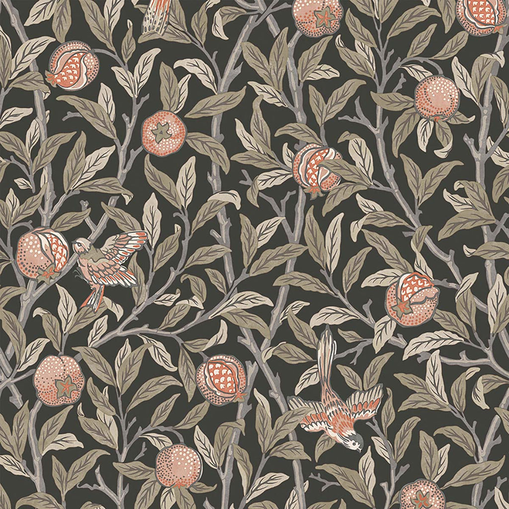 124258 William Morris Bird Pomegranate Charcoal Wallpaper