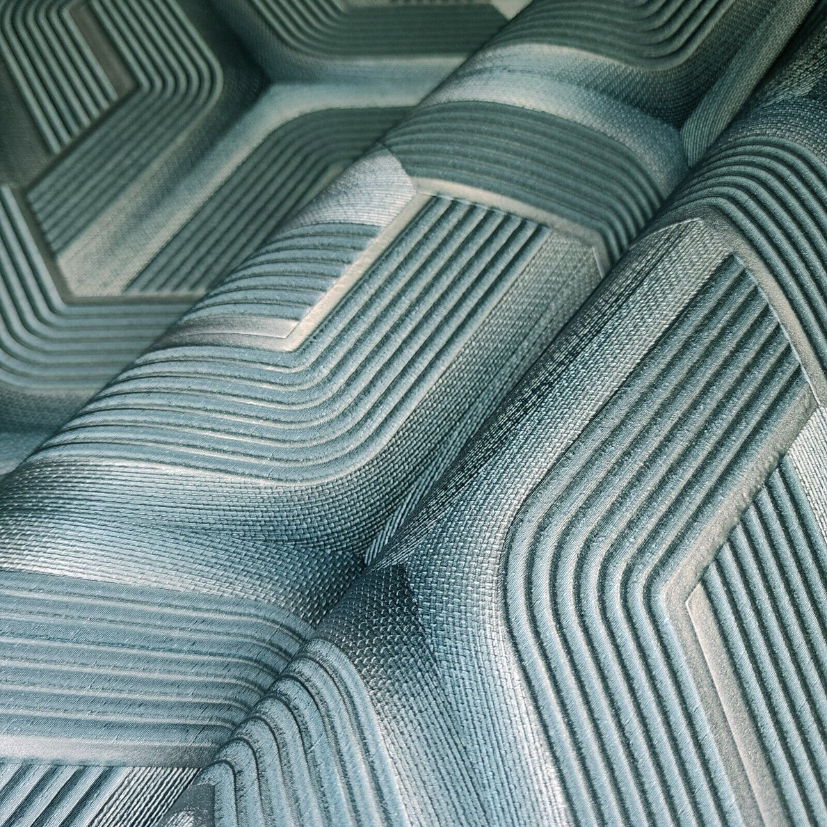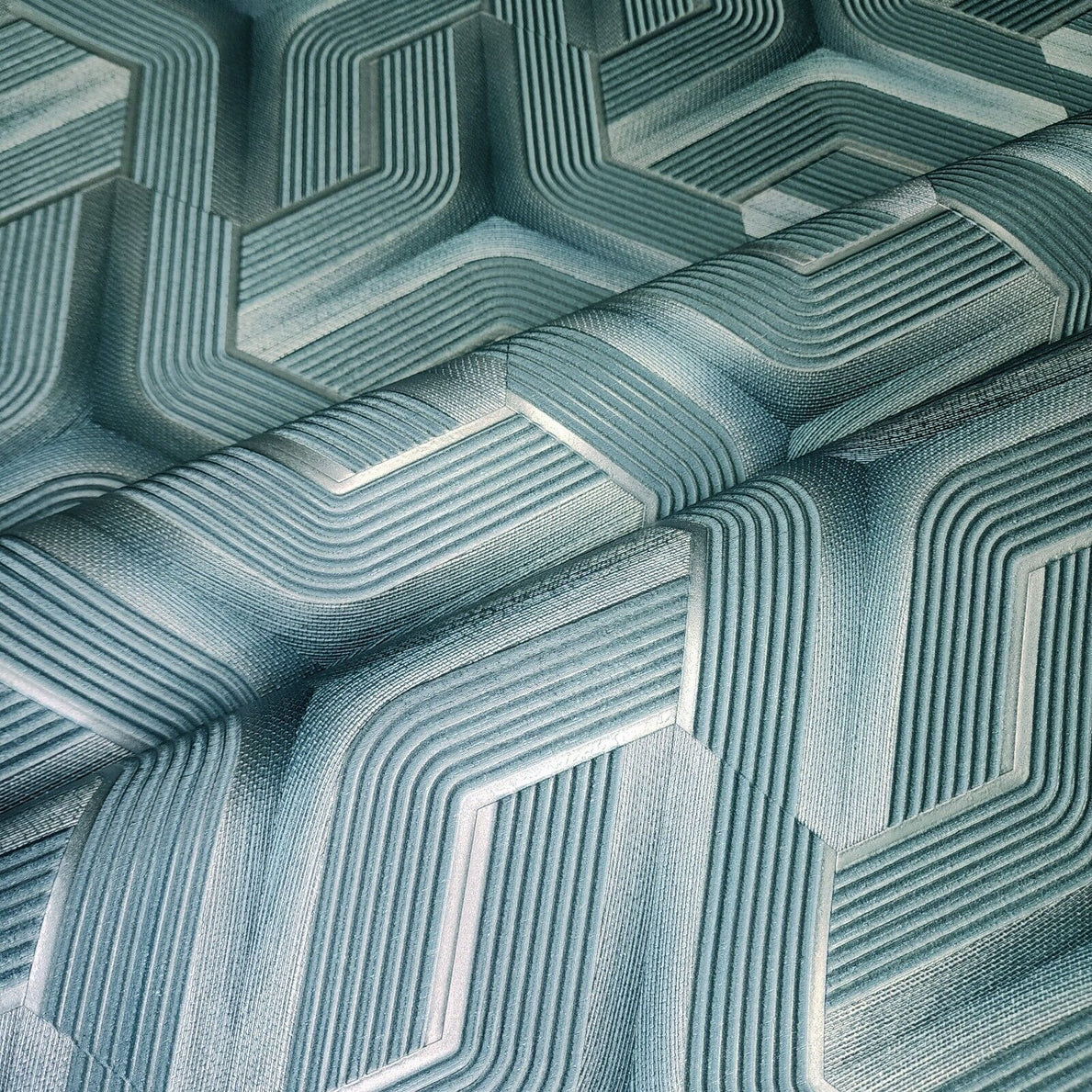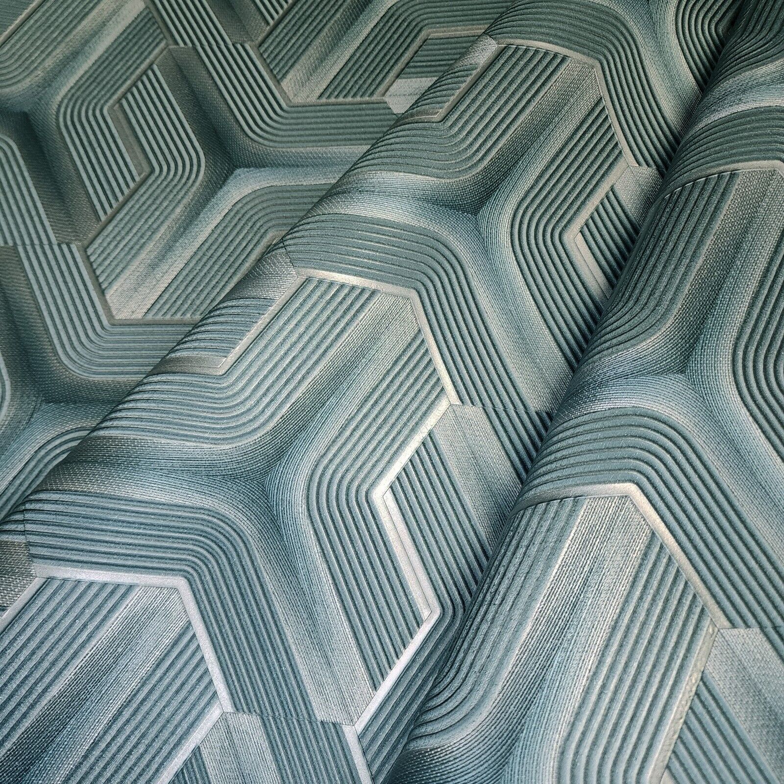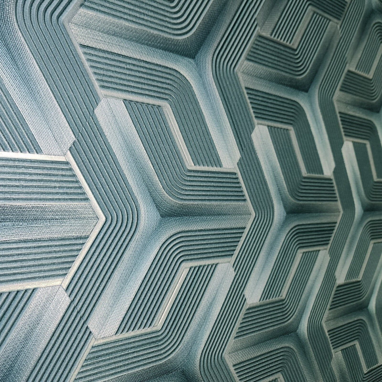 Z12809 Silver teal metallic faux fabric trellis line heavy textured Geometric Wallpaper