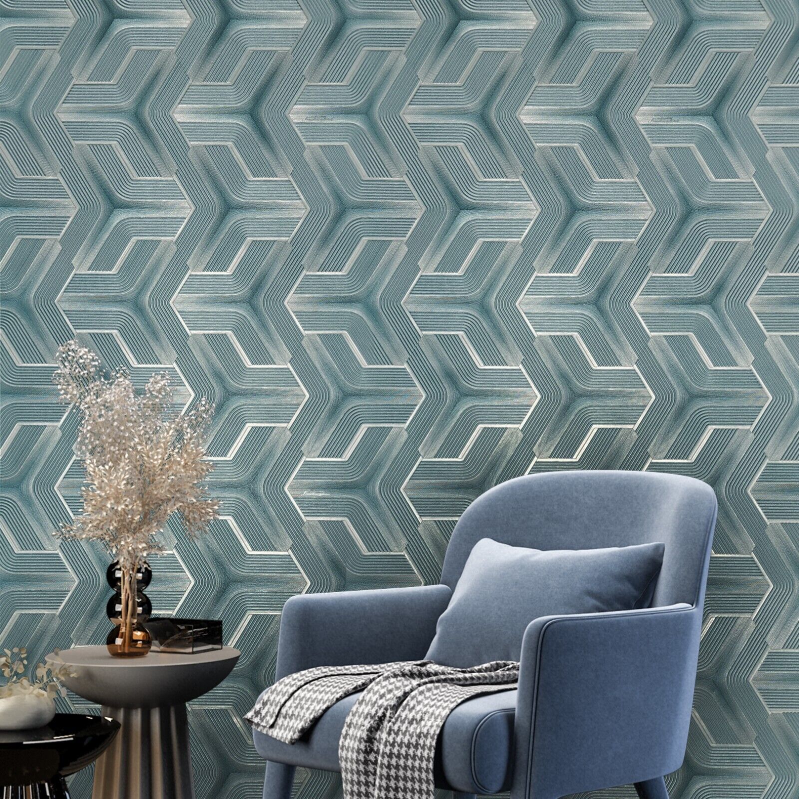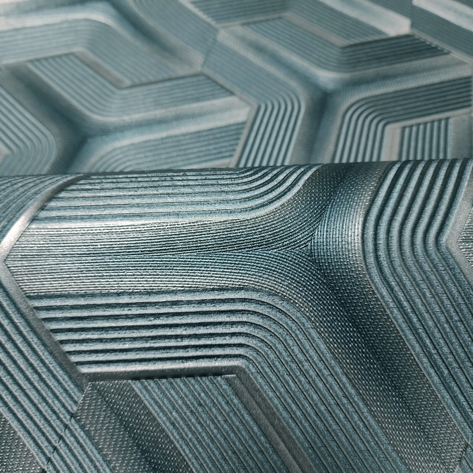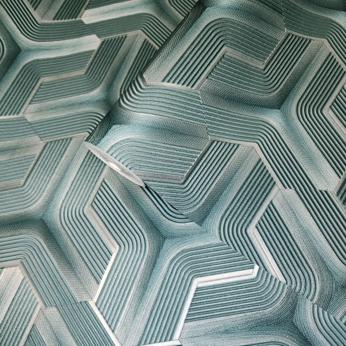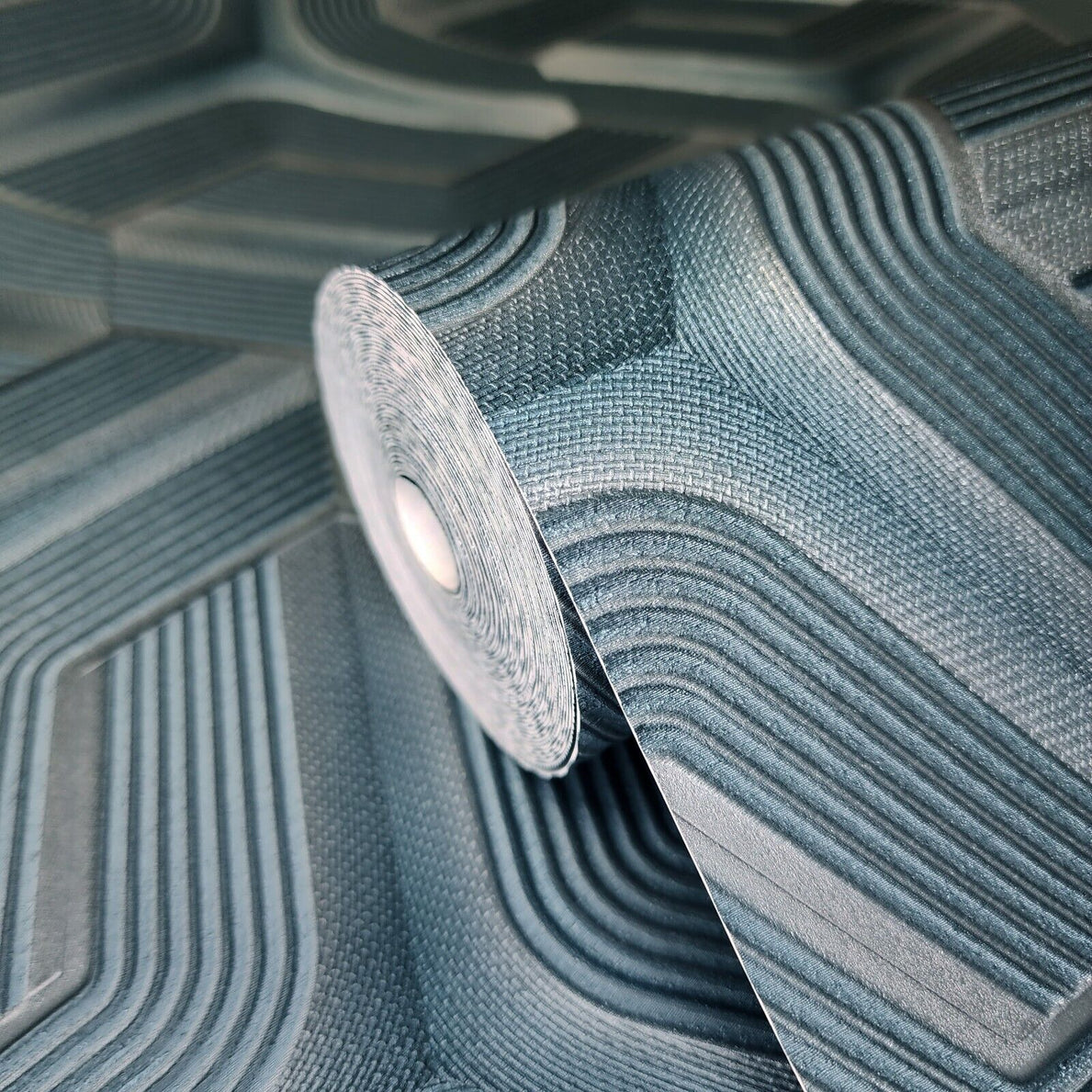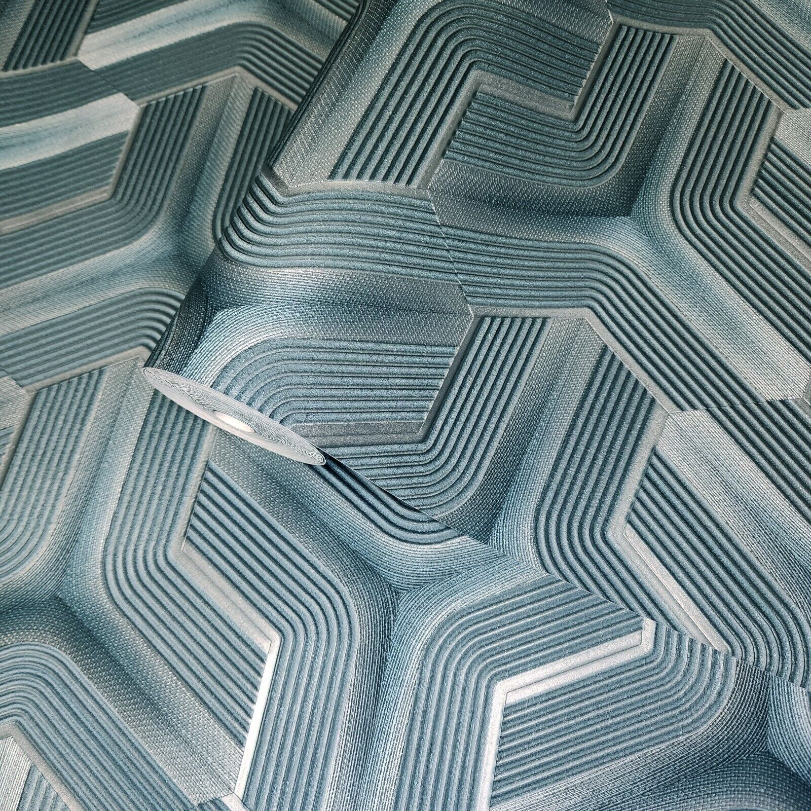 Z12809 Silver teal metallic faux fabric trellis line heavy textured Geometric Wallpaper