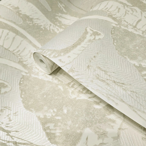 CR22100 Flocking velvet Textured ivory beige off white safari elephant wallpaper roll 3D