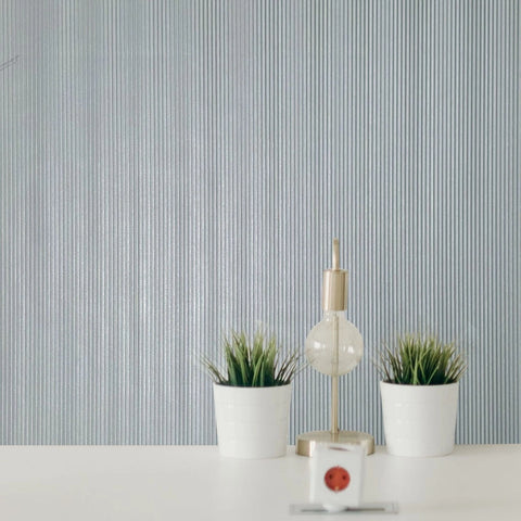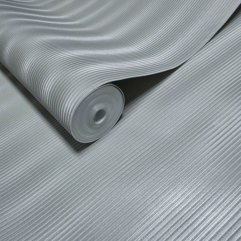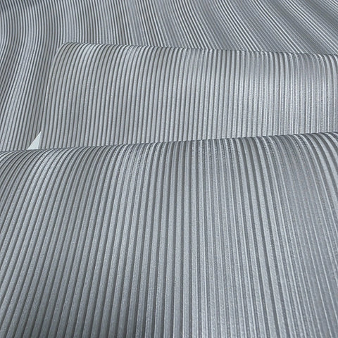 Z12810 Satin gray silver metallic vertical lines faux fabric textured modern Wallpaper