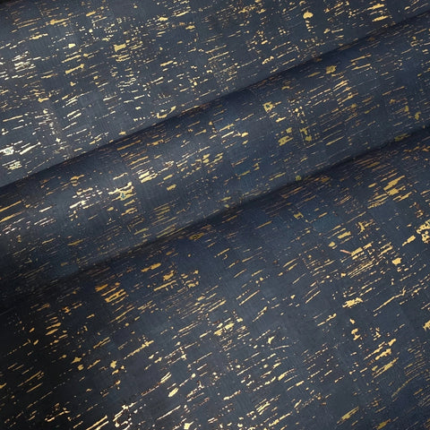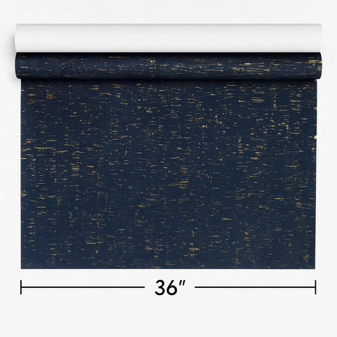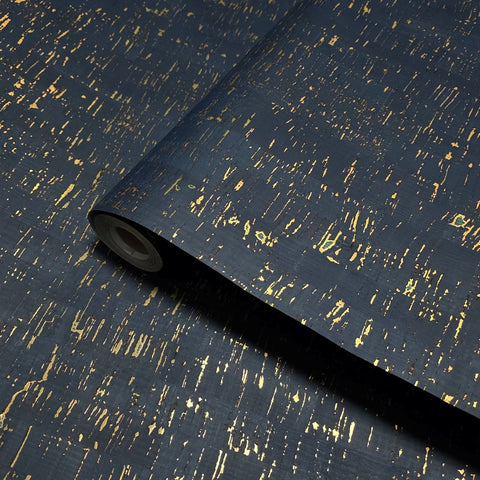 WM865301 Enchanced natural cork deep navy gold metallic foil striped textured Wallpaper