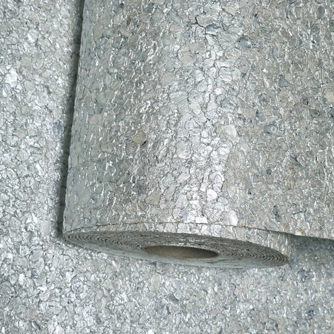 WM0002MBP Gray silver metallic Pearl Big Chip Natural Real Mica Stone Wallpaper Textured